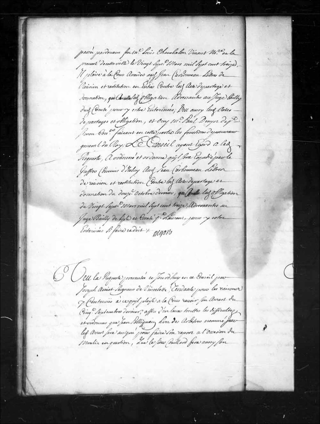 Nomination de Charles Pouliot au lieu de Jean Pouliot, comme arbitre dans la cause entre Joseph Amyot Vincelotte et ses censitaires au sujet du moulin seigneurial, 13 mars 1719, Archives nationales à Québec, Fonds Conseil souverain, (03Q,TP1,S28,P15262).