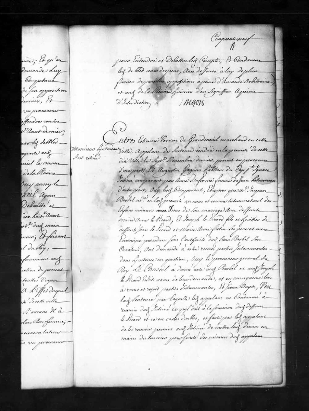 Appel mis à néant de la sentence rendue, le 7 novembre 1719, dans la cause d'Etienne Verron de Grandmesnil, marchand à Québec, contre Augustin Gagnier, habitant du Cap-Saint-Ignace, 18 décembre 1719, Archives nationales à Québec, Fonds Conseil souverain, (03Q,TP1,S28,P15358).