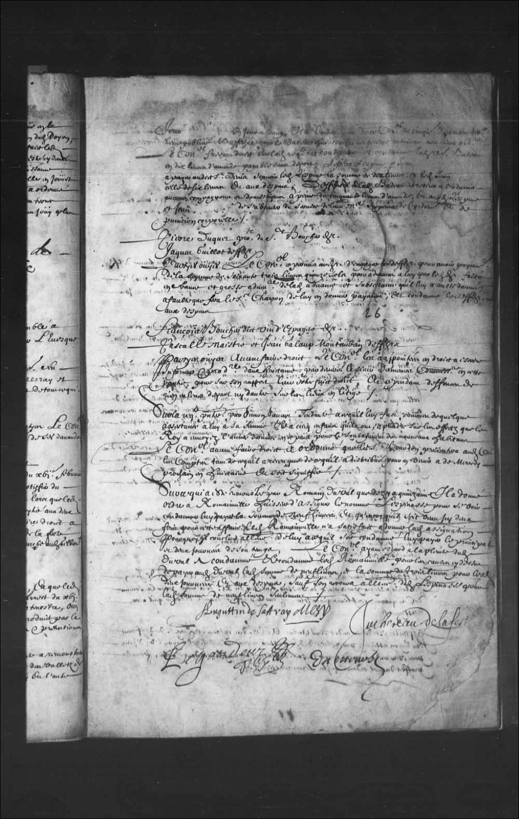 Permission à Pierre Duquet, procureur du sieur Boucher, d'engager Jacques Guillot pour le paiement de la somme de 60 livres 15 sols, en raison d'une avance faite en France à Guillot, 1er mars 1664, Archives nationales à Québec, Fonds Conseil souverain, (03Q,TP1,S28,P1555).