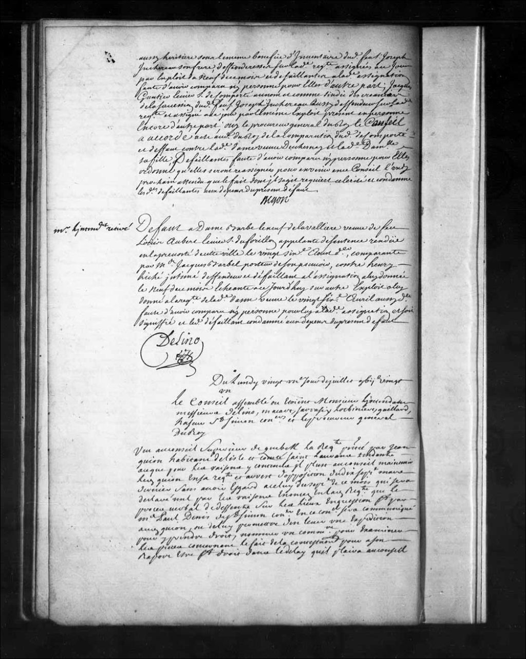 Arrêt qui déboute Jean Guyon, habitant de l'île et comté de Saint-Laurent, de sa requête et ordonne que l'arrêt du 7 juillet 1721 sera exécuté, 21 juillet 1721, Archives nationales à Québec, Fonds Conseil souverain, (03Q,TP1,S28,P15615).