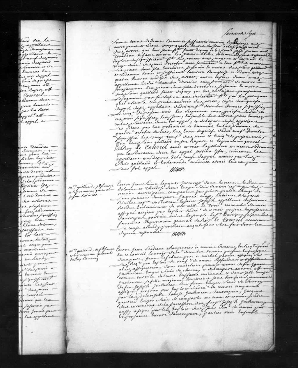 Acte accordé à Jean Badeau de la comparution de la demoiselle Juchereau et du sieur Gaultier (Gauthier) de Comporté, dans sa cause contre Jean Lefebvre père, Michel Parent, 19 janvier 1722, Archives nationales à Québec, Fonds Conseil souverain, (03Q,TP1,S28,P15704).