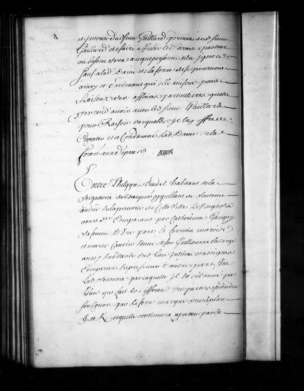 Arrêt qui ordonne, avant faire droit dans la cause de Philippe Trudel, habitant de la seigneurie de Beaupré, contre François Marois et Marianne Cantin, veuve de Guillaume Laberge, que le nommé Gariépy viendra au Conseil dans les délais de l'ordonnance, 1er décembre 1722, Archives nationales à Québec, Fonds Conseil souverain, (03Q,TP1,S28,P15807).