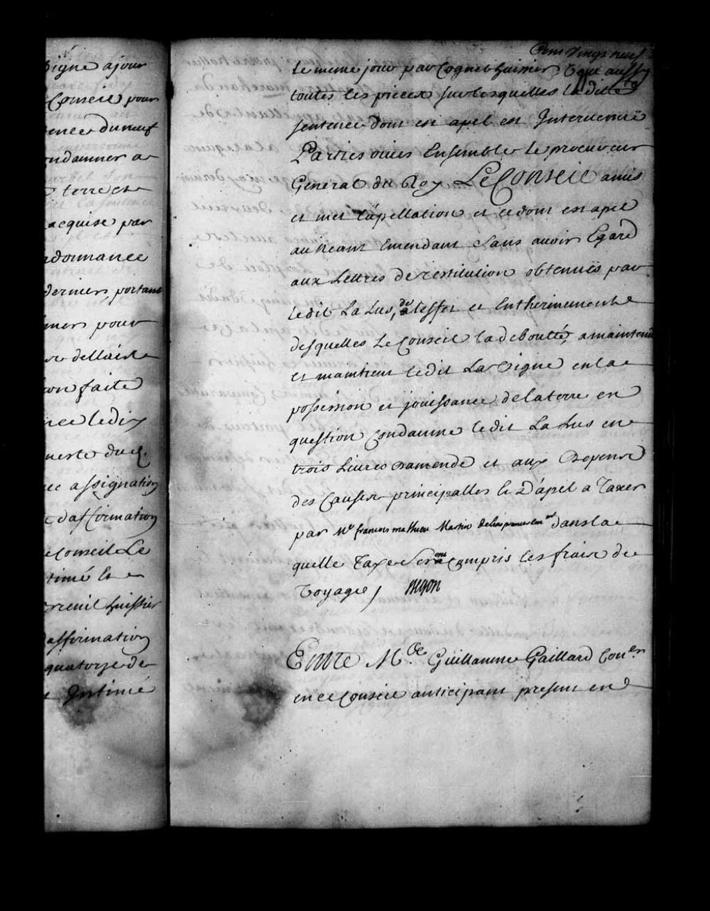 - Appel mis à néant dans la cause de Guillaume Gaillard contre les sieurs Pierre Trottier Desauniers et Pierre Chartier. Il est ordonné que le contrat de vente, du 17 octobre 1720, ainsi que les deux jugements et l'exploit de commandement, du 12 mai 1724, seront exécutés selon leur forme et teneur. Les sieurs Chartier et Desauniers sont condamnés à payer solidairement à Guillaume Gaillard la somme de 2433 livres, avec intérêts depuis le 17 octobre 1722
