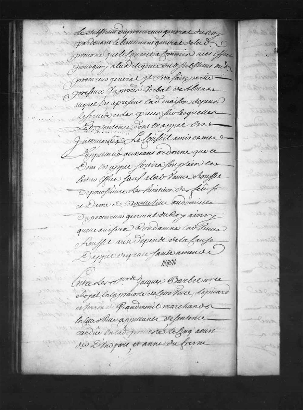 Les parties sont appointées à écrire et produire, dans les délais de l'ordonnance, devant François-Mathieu de Lino, conseiller, dans la cause de Jacques Barbel, notaire, contre Lepicard et Verron de Grandmesnil, marchands de Québec, et Anne Dufresne, veuve de Jean Létourneau, au nom et comme procuratrice d'Augustin Gagné, habitant du Cap-Saint-Ignace, 15 janvier 1725, Archives nationales à Québec, Fonds Conseil souverain, (03Q,TP1,S28,P16126).