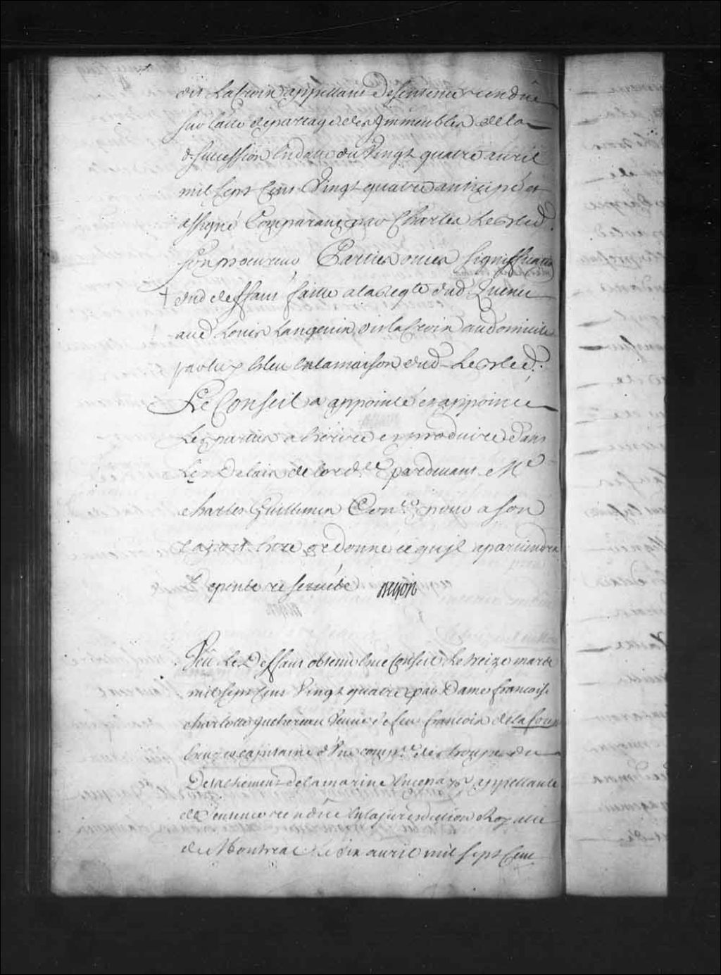 Arrêt qui accorde délai au sieur Zacharie-François Hertel de la Fresnière, lieutenant dans les troupes, dans sa cause avec dame Françoise-Charlotte Juchereau, veuve de François de Laforest, 16 avril 1725, Archives nationales à Québec, Fonds Conseil souverain, (03Q,TP1,S28,P16161).