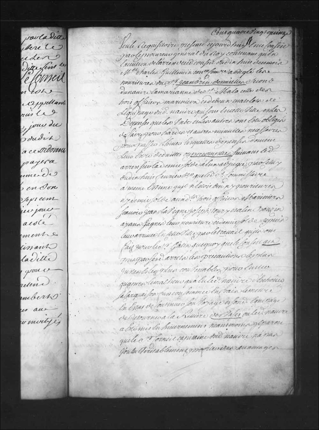 Arrêt qui ordonne aux sieurs de la Malotière et Gatin ensemble, le sieur de Mielle et les officiers mariniers et matelots du navire la Marianne de comparaître au Conseil; différend au sujet du paiement des gages et de la nourriture des officiers et matelots de la Marianne échouée le 10 novembre 1725, 26 mars 1726, Archives nationales à Québec, Fonds Conseil souverain, (03Q,TP1,S28,P16310).