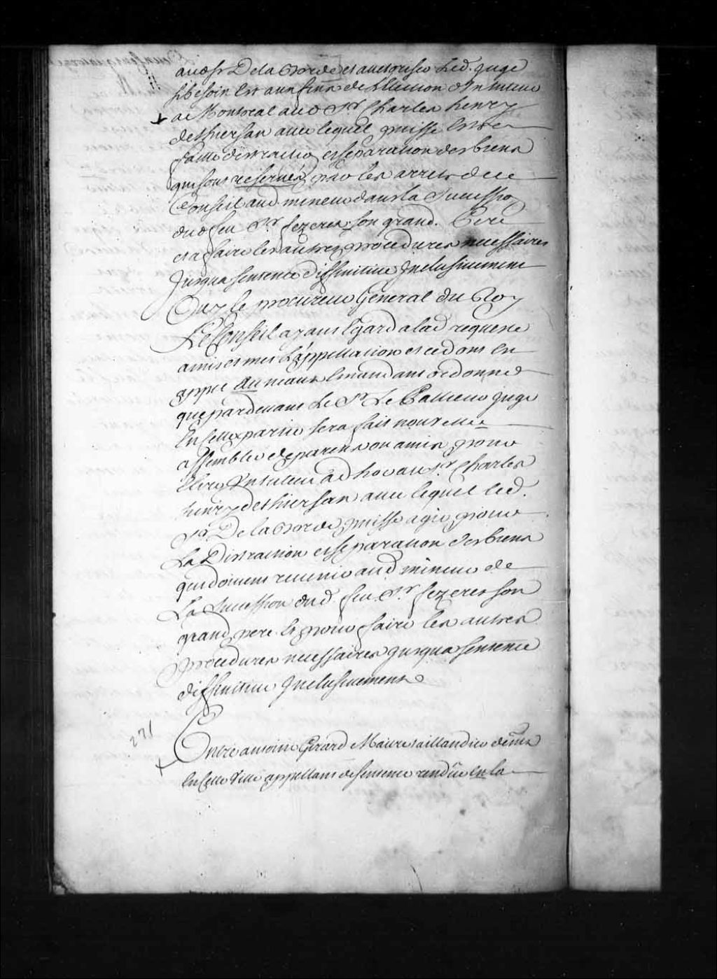 Appel mis à néant de la sentence rendue, le 22 mars 1726, dans la cause d'Antoine Girard, maître taillandier, contre Paul Denys de Saint-Simon, conseiller au Conseil Supérieur. Il est ordonné que les clauses et conditions du contrat de vente en question seront exécutées selon leur forme et teneur, sauf au dit Girard à s'inscrire en faux si bon lui semble contre le dit contrat de vente; le dit Girard est condamné à payer au sieur de Saint-Simon la somme de 600 livres pour quatre années de la rente du dit contrat échues au 2 juin 1725, 29 avril 1726, Archives nationales à Québec, Fonds Conseil souverain, (03Q,TP1,S28,P16328).