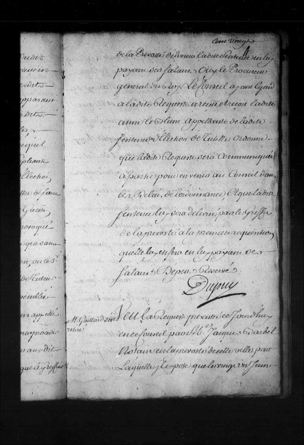 Arrêt qui décide, avant de faire droit, que la requête de Jacques Barbel, notaire, au sujet de l'élection d'un tuteur à Joseph et Marie Lepicard, enfants de feu Pierre Lepicard et de Marie-Anne Fortier, sera communiquée à partie pour en venir au Conseil dans les délais de l'ordonnance, 9 décembre 1726, Archives nationales à Québec, Fonds Conseil souverain, (03Q,TP1,S28,P16424).