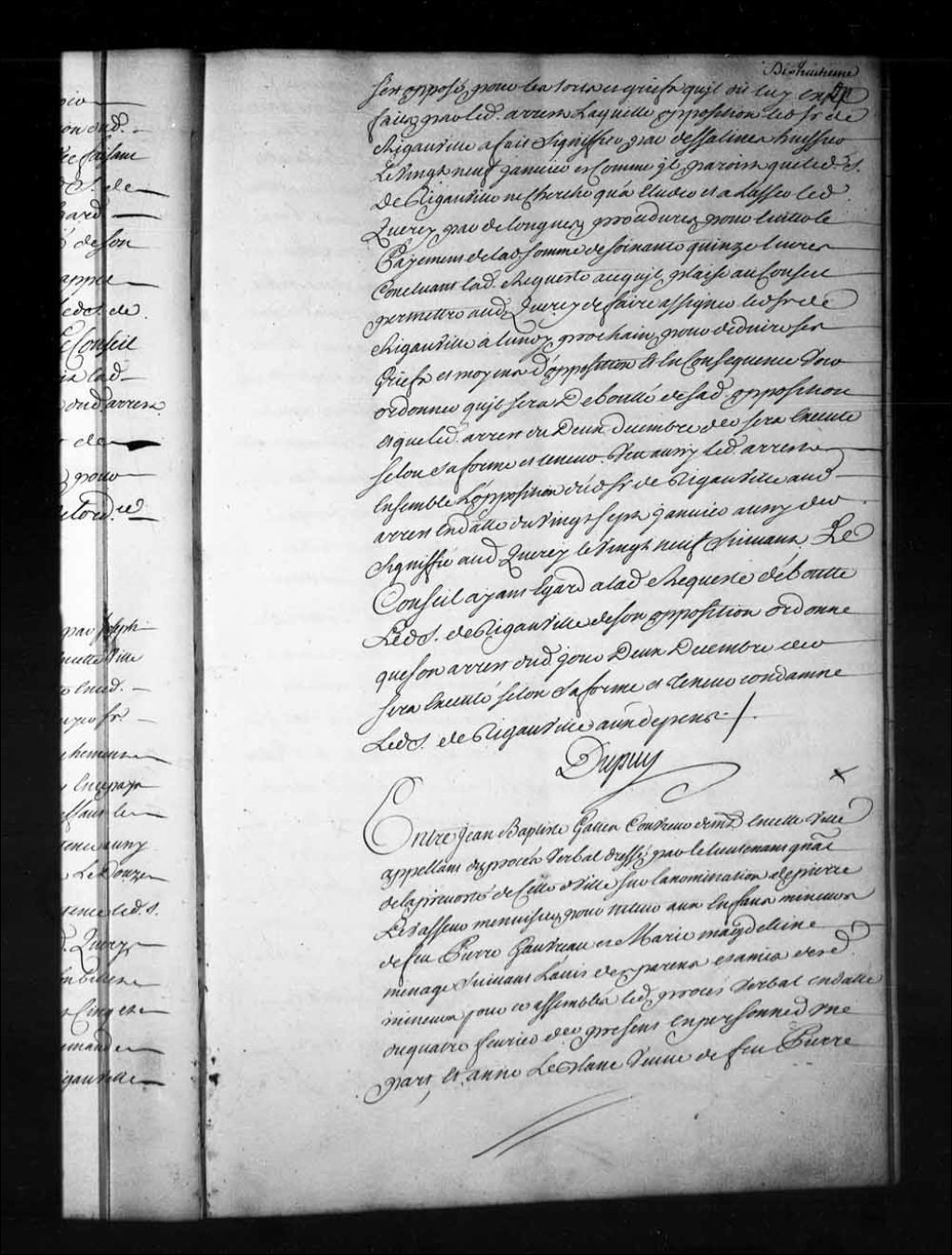 Arrêt qui ordonne que le procès-verbal, du 4 février 1727, sera homologué dans la cause de Jean-Baptiste Gatien, couvreur de Québec, contre Anne Leblanc, veuve de Pierre Ménage. Il est décidé que Pierre Levasseur demeurera tuteur aux enfants mineurs de feu Pierre Gauvreau et de Marie-Madeleine Ménage, 3 mars 1727, Archives nationales à Québec, Fonds Conseil souverain, (03Q,TP1,S28,P16467).