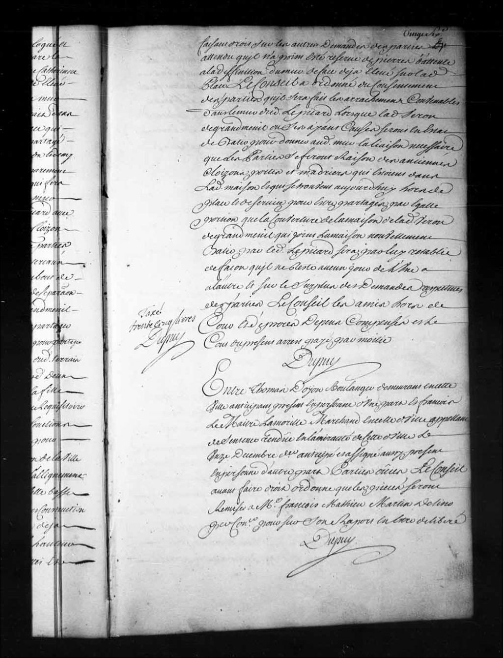 Arrêt qui ordonne aux parties de remettre leurs pièces à François-Mathieu Martin de Lino, conseiller, dans la cause de Thomas Doyon, boulanger, contre François Lemaître Lamorille, marchand à Québec