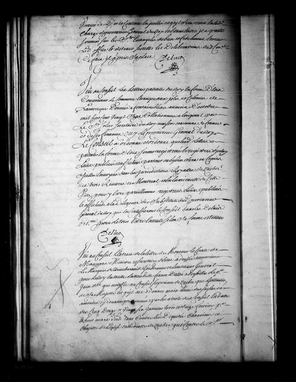 Arrêt qui, à la demande du comte de Maurepas, ministre et secrétaire d'État (lettre à monsieur de Beauharnois du 1er juin 1728), fait mainlevée des saisies prononcées par les arrêts des 5, 12 et 26 janvier, 3 et 16 février, 1er et 8 mars dernier, tant contre les dignités, chanoines et chapitre de Québec, que contre le sieur Boullard, vicaire général et curé de la paroisse de Québec et les Révérends Pères Récollets, 17 septembre 1728, Archives nationales à Québec, Fonds Conseil souverain, (03Q,TP1,S28,P16717).