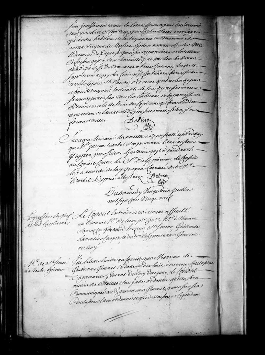 Arrêt qui décide que les capitaines des bâtiments venus cette année de Louisbourg et autres endroits, seront tenus de venir au Conseil aujourd'hui, quatre heures de relevée, pour faire leurs demandes des vivres dont ils ont besoin. Le présent arrêt sera lu et publié au son du tambour dans les lieux ordinaires et accoutumés de Québec afin que personne n'en ignore, 23 juillet 1729, Archives nationales à Québec, Fonds Conseil souverain, (03Q,TP1,S28,P16872).