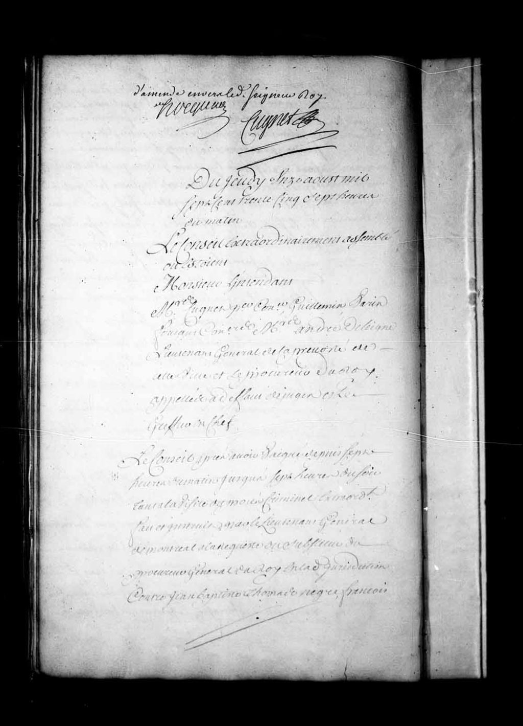 Le Conseil a interrogé, de 7 heures du matin à 7 heures du soir, François Darles et Marie Martin, dans le procès de Jean-Baptiste Thomas, nègre, François Darles, Charlotte Martin Ondoyer, Marie Venne et Marie Martin. Les interrogatoires de Jean-Baptiste Thomas, Charlotte Martin Ondoyer et Marie Venne sont remis au lendemain à 7 heures du matin