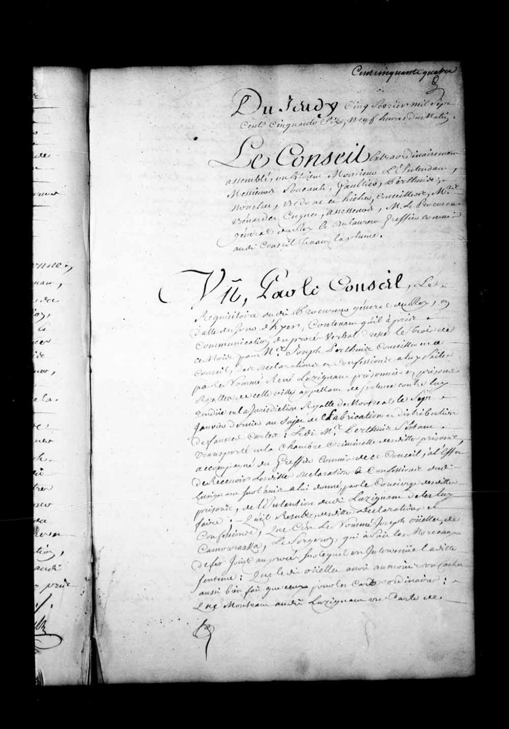 - Arrêt qui ordonne l'arrestation de Joseph Ouellet, forgeron, de Kamouraska, dénoncé par René Lusignan, comme son complice dans la fabrication de fausses cartes (monnaie)
