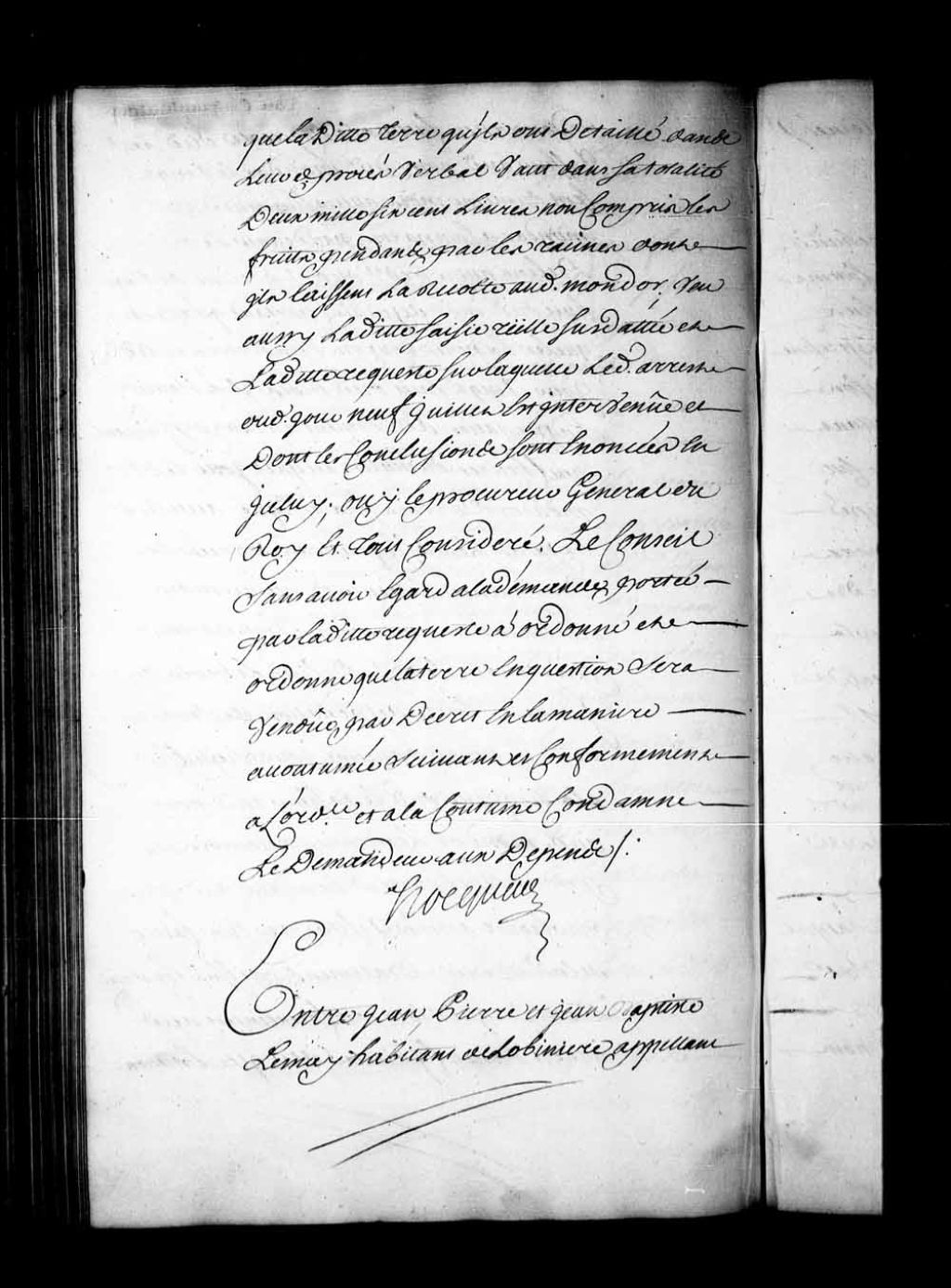 Arrêt qui ordonne que le grand voyer se rendra à Lotbinière afin de vérifier sommairement les faits respectifs des parties contenus dans l'écrit de griefs de l'appelant, dans la cause entre Jean-Pierre Lemay et Jean-Baptiste Lemay, contre Joseph Lemay, tous trois habitants de Lotbinière, 6 août 1731, Archives nationales à Québec, Fonds Conseil souverain, (03Q,TP1,S28,P17489).