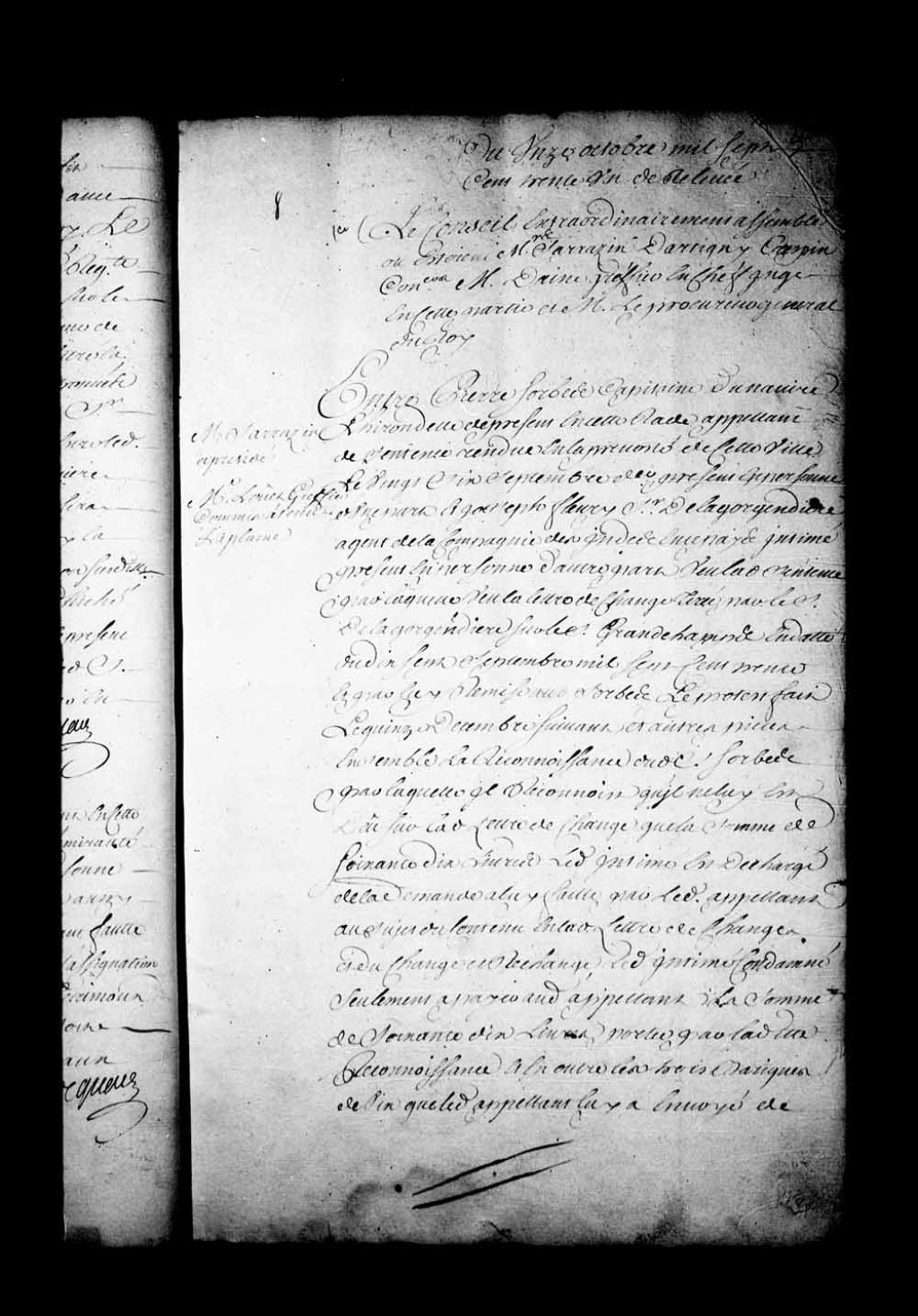 Appel mis à néant de la sentence rendue en la Prévôté de Québec, le 26 septembre 1731, dans la cause entre Pierre Sorbes, capitaine du navire «l'Hirondelle», présentement en la rade de Québec, et Joseph Fleury de la Gorgendière, agent de la Compagnie des Indes. Il est ordonné que les trois barriques de vin en question seront payées par l'intimé sur le pied d'achat fait à Louisbourg et le fret (prix du transport, par voie maritime, d'un chargement de marchandises), à raison du prix ordinaire, 11 octobre 1731, Archives nationales à Québec, Fonds Conseil souverain, (03Q,TP1,S28,P17522).