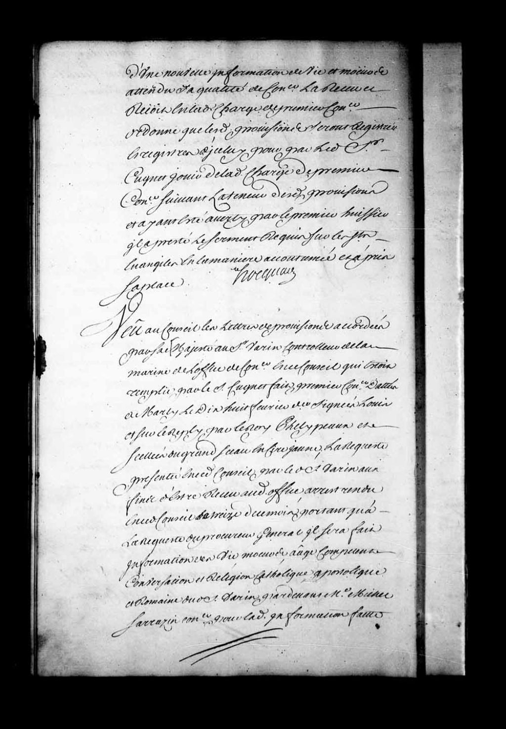 Arrêt qui reçoit le sieur Varin, contrôleur de la Marine, en la charge de conseiller au Conseil Supérieur, en remplacement du sieur Cugnet, et ordonne que ses provisions datées à Marly, le 18 février 1733, seront enregistrées dans les registres du Conseil, 18 juillet 1733, Archives nationales à Québec, Fonds Conseil souverain, (03Q,TP1,S28,P17828).