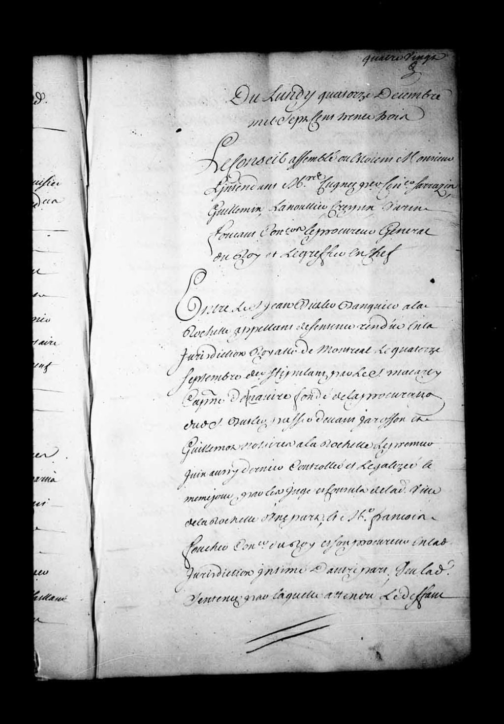 Appel mis à néant dans la cause entre Jean Butler, banquier à La Rochelle et appelant de la sentence rendue en la Juridiction de Montréal, le 14 septembre 1733, contre François Foucher, procureur du Roi à Montréal. Il est ordonné que l'acte de société en question sera exécuté selon sa forme et teneur et, en conséquence, les parties sont renvoyées à compter devant des arbitres suivant et conformément aux clauses et conditions portées par le dit acte de société, 14 décembre 1733, Archives nationales à Québec, Fonds Conseil souverain, (03Q,TP1,S28,P17898).