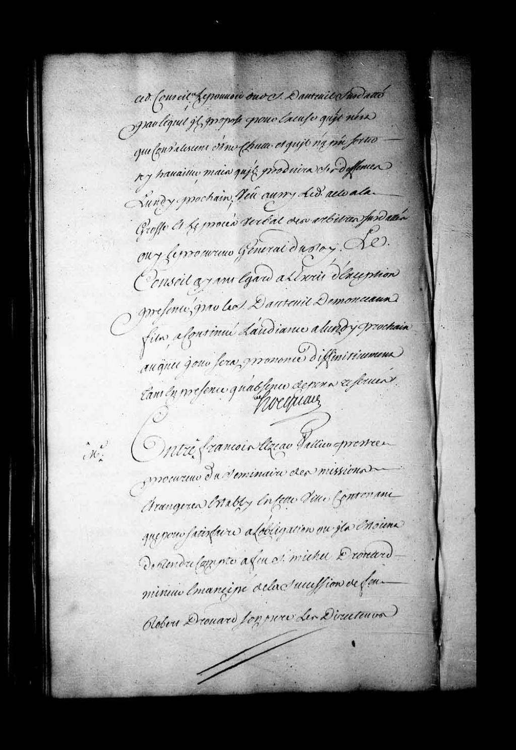 Arrêt qui ordonne que la veuve Michel Drouard sera tenue de reprendre l'instance avec les directeurs du Séminaire de Québec représentés par François-Elzéar Vallier, procureur du dit Séminaire, 25 février 1734, Archives nationales à Québec, Fonds Conseil souverain, (03Q,TP1,S28,P17934).
