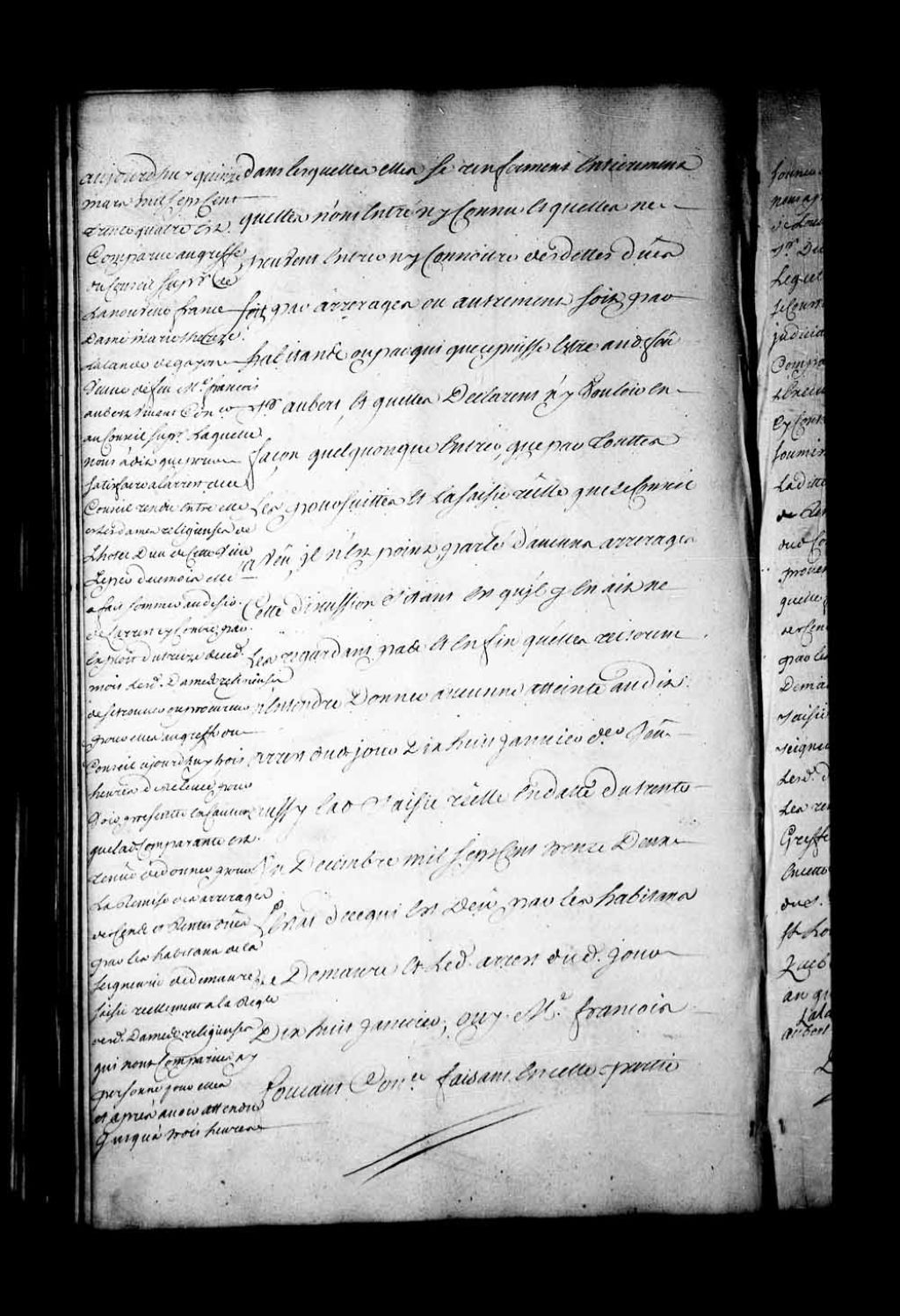 Acte de caution de Marie-Thérèse de Lalande Gayon, veuve de François Aubert, pour se rendre au désir de l'arrêt du 1er mars 1734. Louis Aubert de la Chesnaye se constitue caution de la dite dame Aubert, etc., etc, 15 mars 1734, Archives nationales à Québec, Fonds Conseil souverain, (03Q,TP1,S28,P17936).