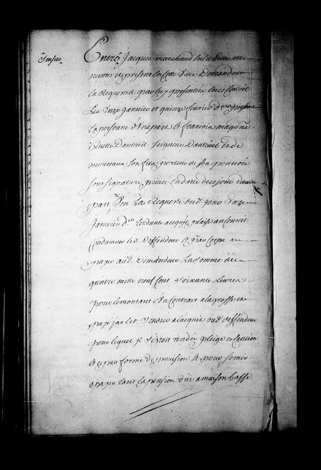 - Arrêt qui, par forme de provision, accorde à Jacques Sensier, marchand de Nantes, présentement à Québec, une somme de 4960 livres pour le montant du contrat en contestation. Le sieur François-Madeleine d'Auteuil, en conséquence, est condamné à payer la dite somme à Sensier