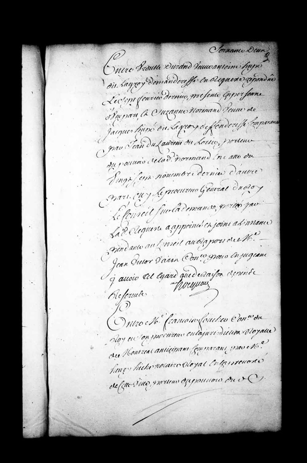 Arrêt qui ordonne que les pièces des parties seront remises à Nicolas Lanouillier, conseiller, dans la cause entre François Foucher, procureur de la Juridiction de Montréal, et Élisabeth Clerin, fille de feu Denis d'Estienne de Clérin, vivant lieutenant des troupes, et de Jeanne de Selles, appelante de la sentence rendue en la Juridiction de Montréal, le 24 décembre dernier, 28 mars 1735, Archives nationales à Québec, Fonds Conseil souverain, (03Q,TP1,S28,P18135).