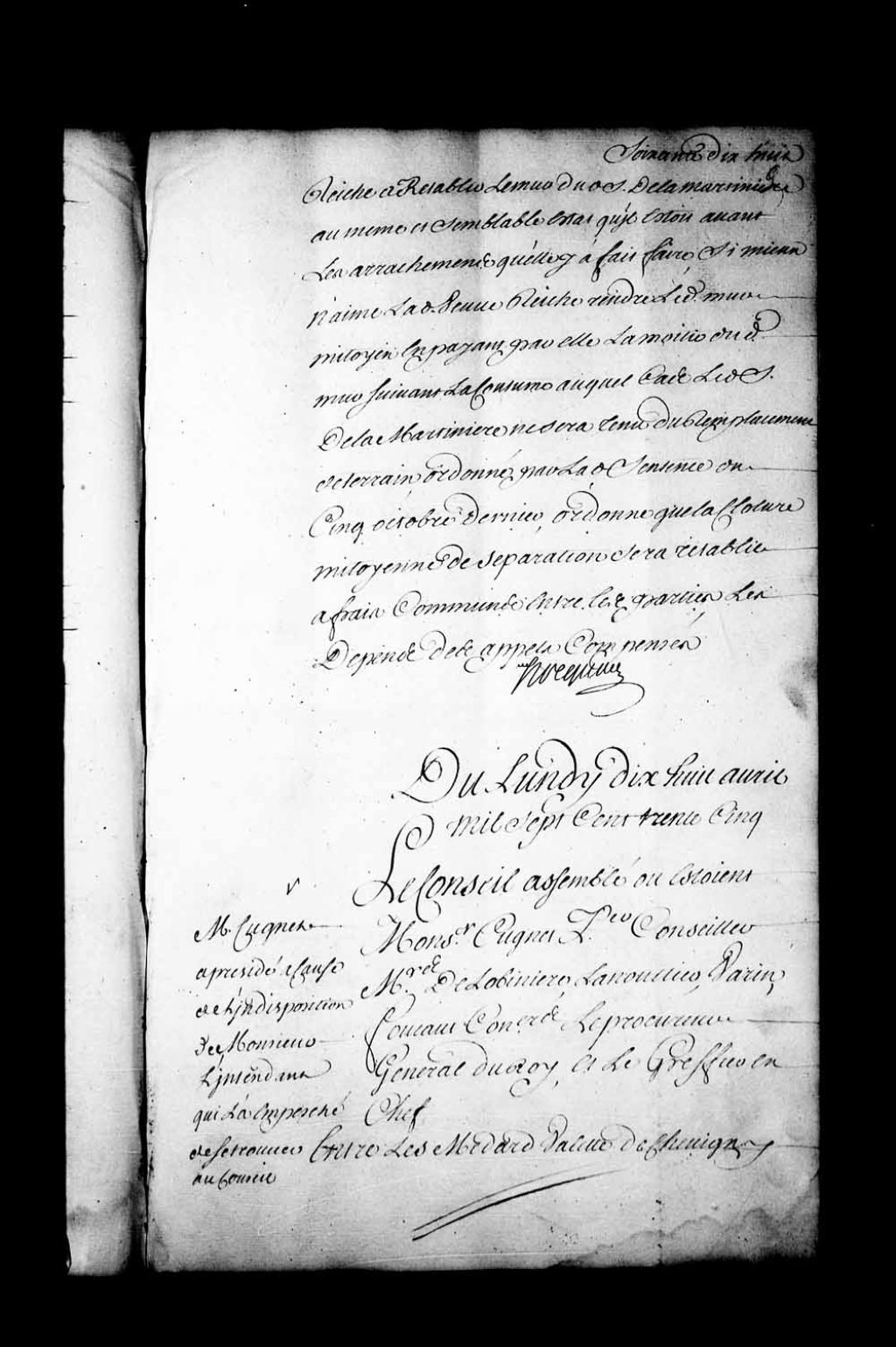 Arrêt qui ordonne avant faire droit que par Carpentier, entrepreneur de maçonnerie, il sera dressé procès-verbal des réparations à faire à la maison en contestation dans la cause entre Médard Valette de Chevigny, écrivain du Roi, et Joseph Lepellé de Voisy, commissaire établi au régime de la dite maison, saisie à la requête de feu Michel Sarrazin sur feu Michel Drouard, 18 avril 1735, Archives nationales à Québec, Fonds Conseil souverain, (03Q,TP1,S28,P18143).