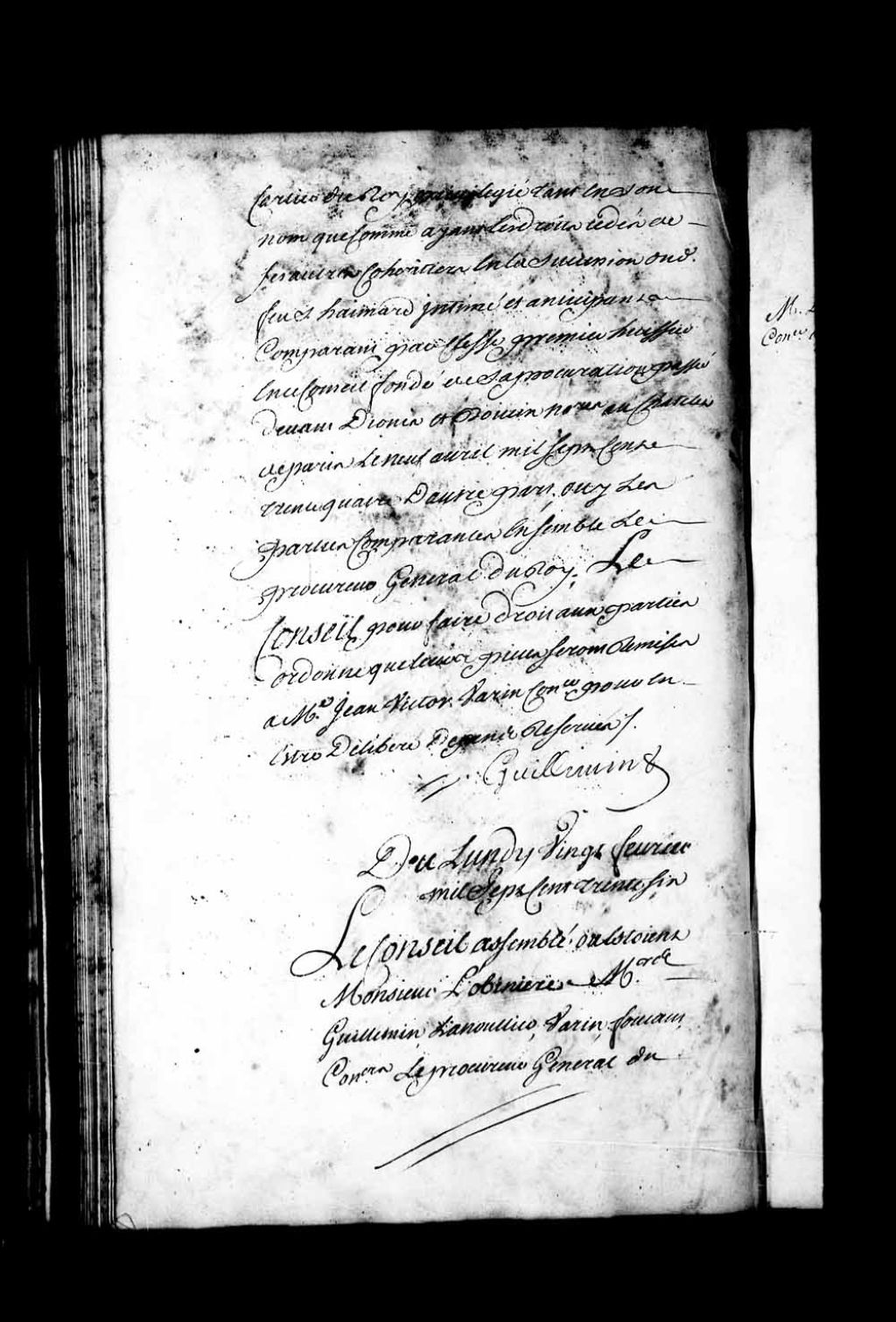 Appel mis à néant dans la cause entre Louise Guillot, veuve de Pierre Haimard (Aymard) et le sieur Simon Haimard (Aymard). L'appellation mise à néant au chef qui condamne la dite veuve Haimard au nom de procuratrice et en celui par lequel elle est condamnée, indistinctement aux dépens par l'exécutoire. Il est ordonné que le dit exécutoire sortira effet contre la veuve Haimard seulement pour la somme de 48 livres, 5 sols, pour sa part personnelle desdits dépens, 20 février 1736, Archives nationales à Québec, Fonds Conseil souverain, (03Q,TP1,S28,P18284).