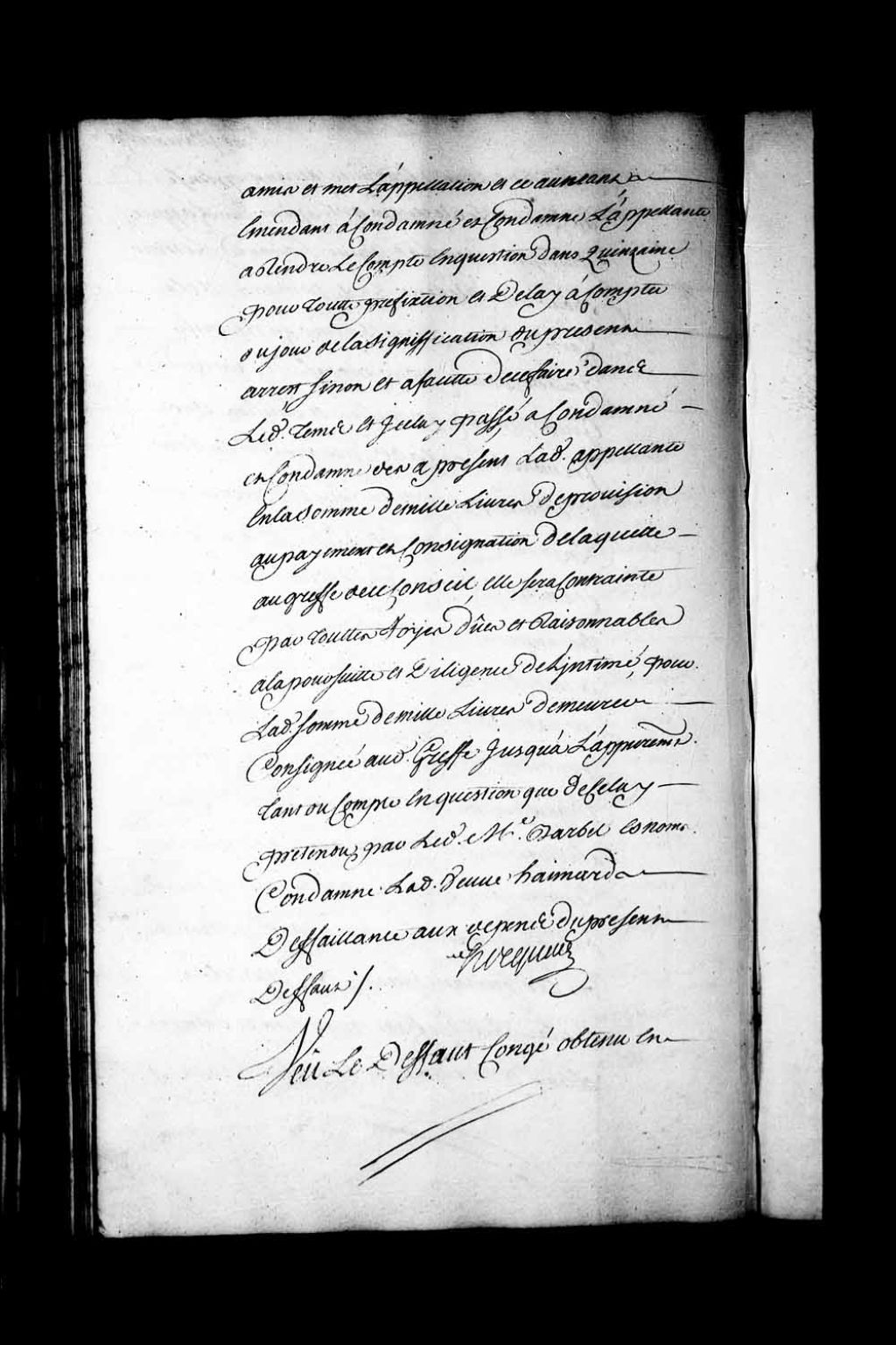 - Appel mis à néant de la sentence rendue en la Prévôté de Québec, le 13 septembre 1735, à l'égard de la veuve Haimard (Aymard), dans la cause de Simon Haimard (Aymard) (Aymard), marchand cartier (cartes à jouer), contre Jacques Barbel, curateur à la succession vacante de Charles Aubert de la Chesnaye. Il est ordonné que la veuve Haimard (Aymard) rendra compte, dès à présent, par bref état au dit appelant, de la gestion en question