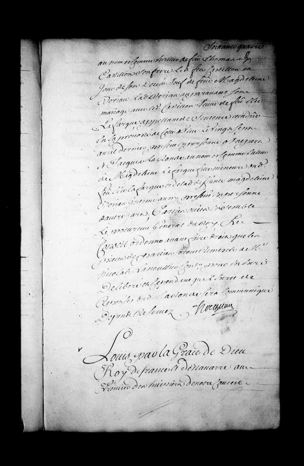 Appel mis à néant dans l'affaire entre Étienne Robert, conseiller du Roi et son ancien procureur au Hâvre-de-Grâce, au nom et comme père temporel et syndic des Récollets de Montréal, en cette qualité appelant de la sentence rendue en la Juridiction de Montréal, le 24 avril 1736, contre le sieur Louis Normand, supérieur du Séminaire de Saint-Sulpice, vicaire général et curé de Montréal, et le sieur Déat, prêtre et vicaire de la dite paroisse. Le Conseil met l'appellation à néant au chef concernant les intimés (les abbés Normand et Déat) pour avoir porté préjudice d'une notification et connaissance suffisante de la volonté du défunt sieur Lefebvre, prêtre et docteur en théologie, d'être inhumé en l'église des Religieux Récollets de Montréal et non enterré son corps en l'église de la dite paroisse de Montréal. De plus, les intimés sont condamnés par forme de dommages et intérêts en la somme de 60 livres, laquelle somme ils seront tenus de remettre entre les mains du sieur Robert, appelant aux dits noms, à l'effet d'être employée à célébrer un service pour le repos de l'âme du dit Lefebvre, 6 août 1736, Archives nationales à Québec, Fonds Conseil souverain, (03Q,TP1,S28,P18367).