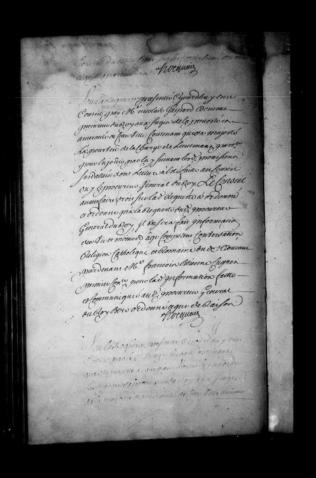 Arrêt qui ordonne qu'il sera fait information par-devant François-Étienne Cugnet, premier conseiller, des vie, moeurs, etc., etc., de Nicolas-Gaspard Boucault, procureur du Roi aux sièges de la Prévôté et Amirauté de Québec, pourvu par Sa Majesté de la charge de lieutenant particulier