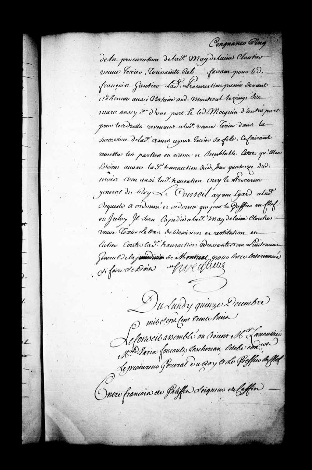 Arrêt qui ordonne que les parties mettront leurs pièces devant Nicolas Lanouillier, conseiller, dans trois jours, pour leur être fait droit, dans la cause entre François de Galiffet, seigneur de Caffin, chevalier de Saint-Louis, major de Québec, appelant de la sentence rendue en la Prévôté de Québec, le 1er octobre 1738, contre Jacques Barbel, notaire royal, syndic de la majeure partie des créanciers de défunts sieur et dame Morel de la Durantaye, et Charles Morel de la Chaussée, François Morel de la Durantaye et Françoise Morel, veuve de Louis de Cadéran, enfants et héritiers des sieur et dame Morel de la Durantaye