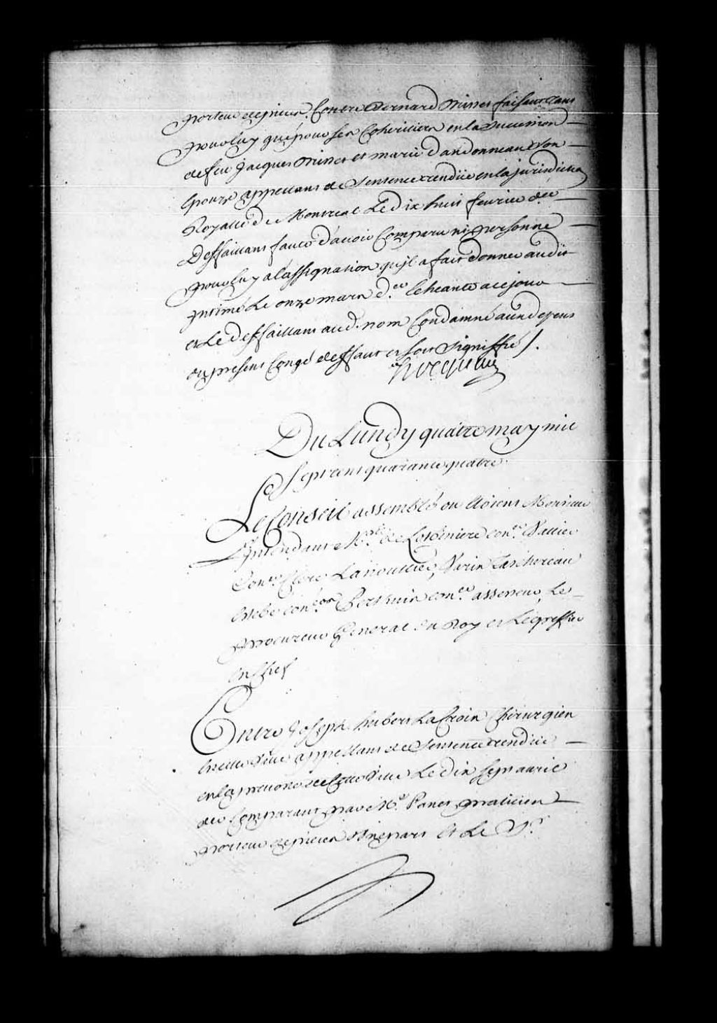 Appel mis à néant de la sentence rendue en la Prévôté de Québec, le 17 avril 1744, dans la cause entre Joseph Hubert Lacroix, chirurgien en la ville de Québec, contre le sieur Briau, chirurgien du Roi en la ville de Québec. Joseph Hubert Lacroix est condamné l'amende de 3 livres pour son «fol appel» et aux dépens de la cause d'appel, 4 mai 1744, Archives nationales à Québec, Fonds Conseil souverain, (03Q,TP1,S28,P19599).