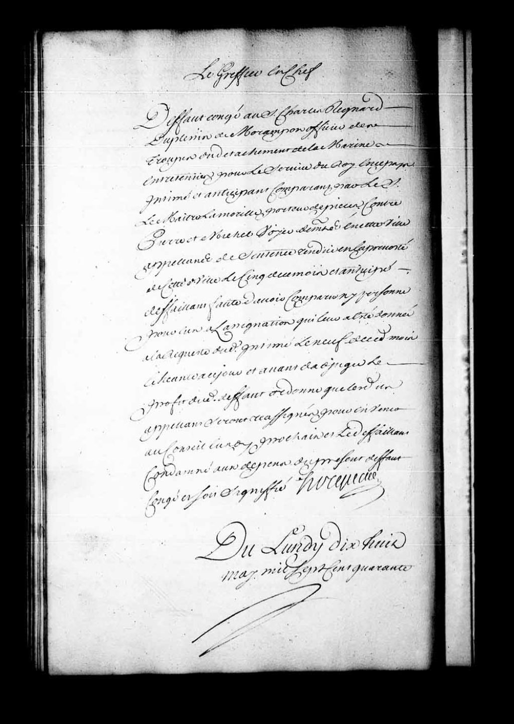Appel mis à néant de la sentence rendue en la Prévôté de Québec, le 5 mai 1744, dans la cause entre Pierre et Michel Voyer (appelants), contre Charles Regnard Duplessis de Morampont, officier dans les troupes de la Marine. Il est ordonné que les parties cloront mitoyennement en pieux à frais communs, suivant l'usage et où le dit sieur Duplessis voudrait faire un mur de clôture, il pourra le faire sur son fonds et à ses dépens. Le dit sieur Duplessis est condamné aux dépens des causes principale et d'appel, 18 mai 1744, Archives nationales à Québec, Fonds Conseil souverain, (03Q,TP1,S28,P19605).