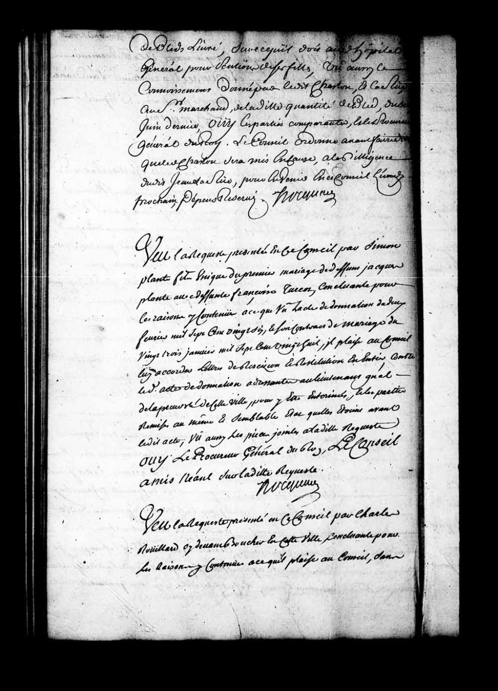 Arrêt qui met néant sur la requête de Simon Plante, fils unique du premier mariage de défunt Jacques Plante et de défunte Françoise Turcot, pour obtenir des lettres de rescision et restitution en entier contre un acte de donation, du 2 février 1726, et le contrat de mariage du dit Jacques Plante du 23 janvier 1728