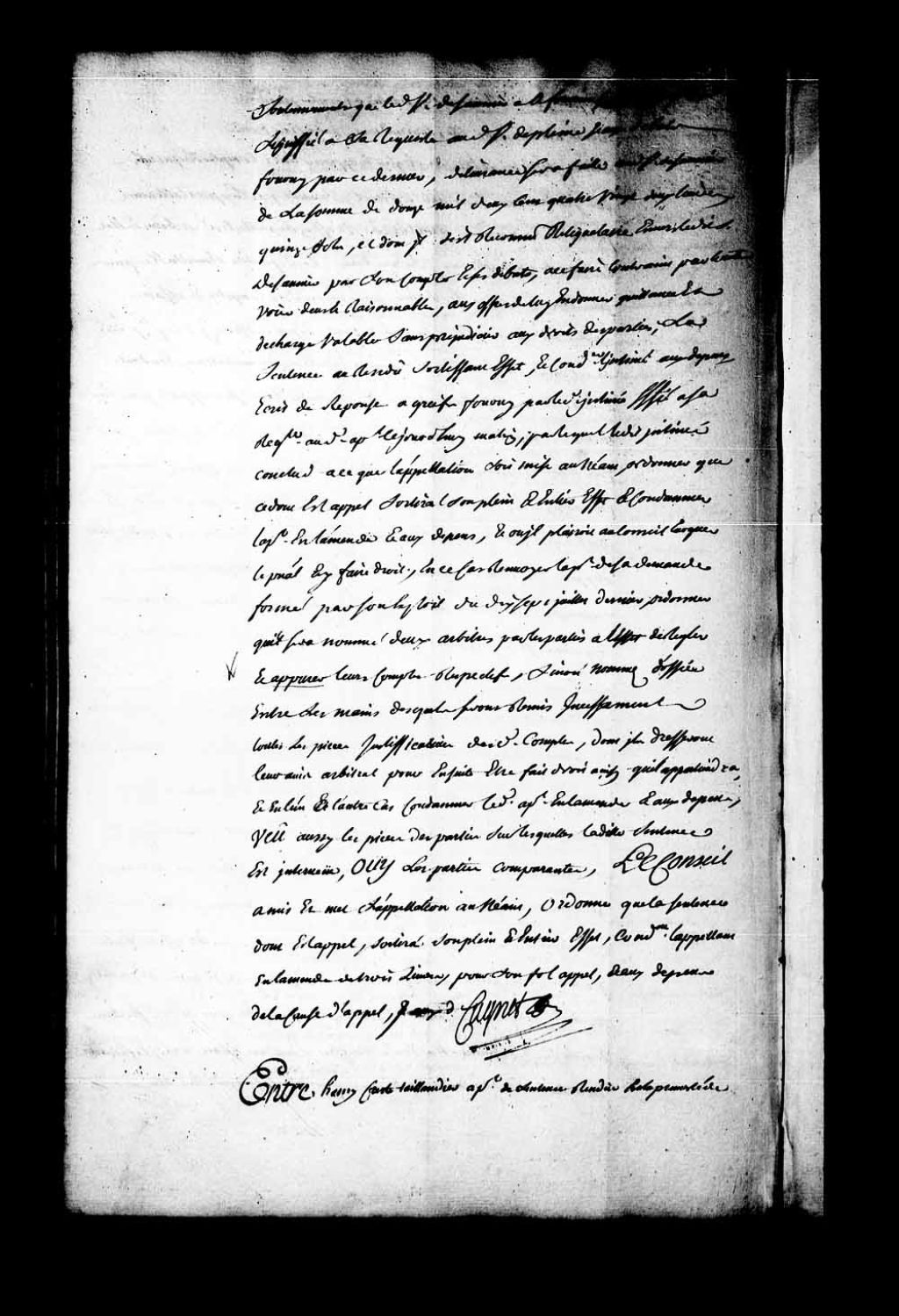Appel mis à néant de la sentence rendue en la Prévôté de Québec, le 3 juillet 1750, dans la cause entre Henri Creste, taillandier, contre Pierre Simon Leduc, mineur émancipé, procédant sous l'autorité de Pierre Marcoux, son curateur aux causes. Henri Creste est condamné à l'amende de 3 livres pour son «fol appel» et aux dépens de la cause d'appel, 3 août 1750, Archives nationales à Québec, Fonds Conseil souverain, (03Q,TP1,S28,P20503).