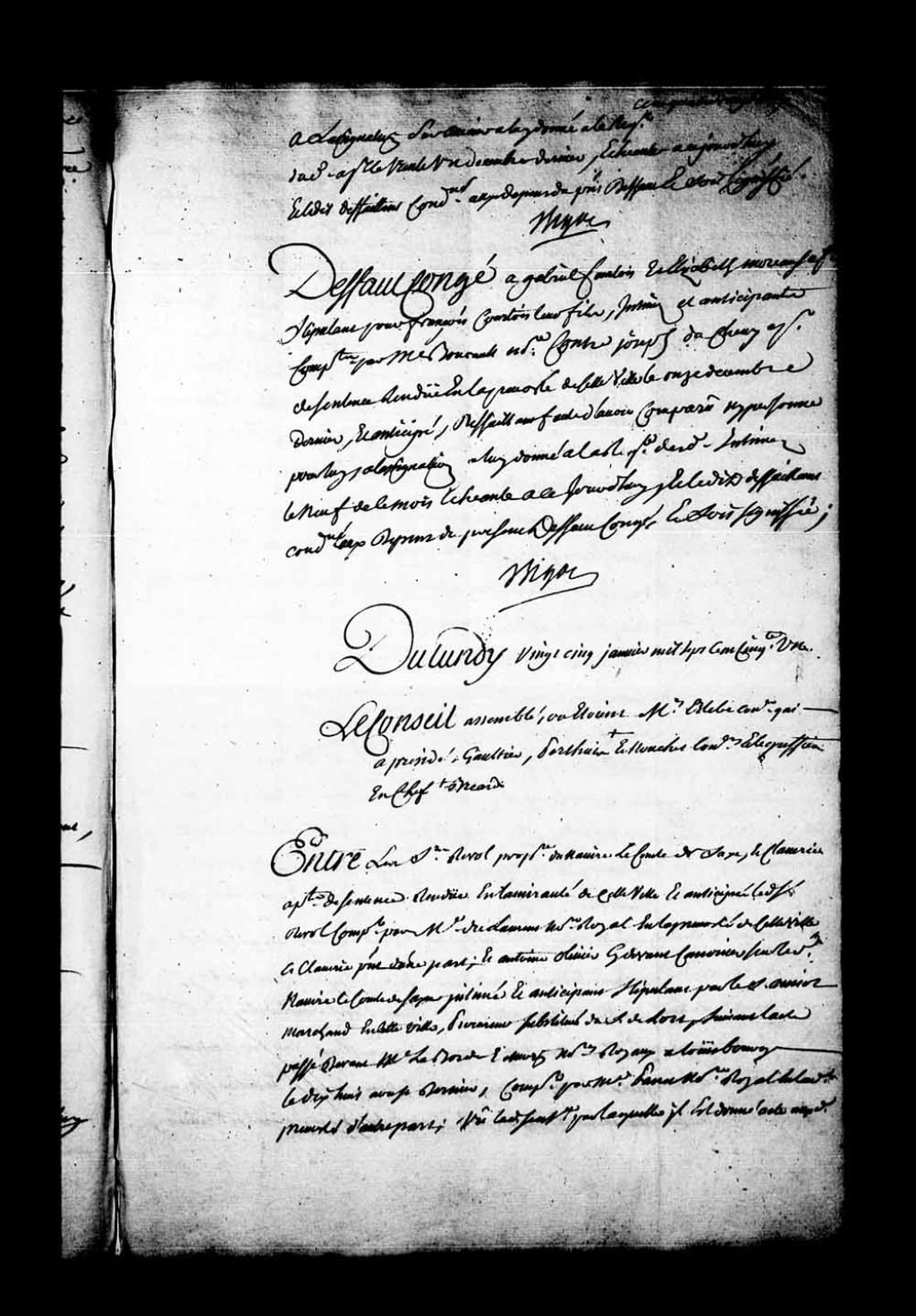 Appel mis à néant de la sentence rendue en l'Amirauté de Québec dans la cause entre le sieur Pierre Revol, propriétaire du navire le Comte de Saxe, et le sieur Claverie contre Antoine Olivier, canonnier sur le dit navire le Comte de Saxe. Appel mis à néant au chef qui condamne Revol et le sieur Claverie à remettre à l'intimé la quantité de six quarts de farine, six quarts de pois verts, six quintaux de morue, ou à en payer la valeur et en ce qu'il est condamné aux dépens. Le Conseil décharge les dits appelants de la condamnation et des dépens prononcés contre eux, 25 janvier 1751, Archives nationales à Québec, Fonds Conseil souverain, (03Q,TP1,S28,P20568).