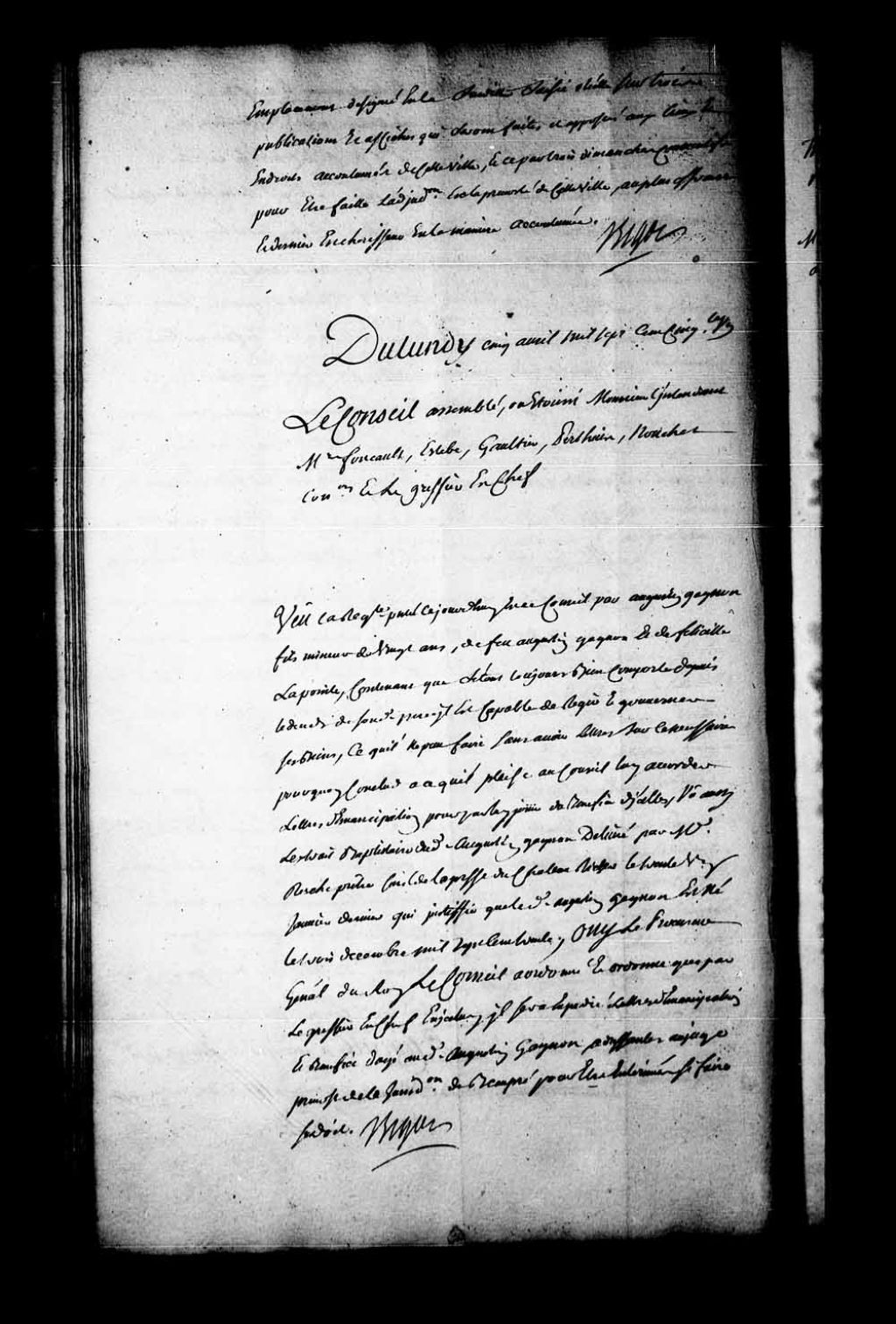 Arrêt qui ordonne, que par le greffier en chef du Conseil, qu'il sera expédié des lettres d'émancipation et bénéfice d'âge à Augustin Gagnon fils, mineur de 20 ans, né à Château-Richer en décembre 1730, fils de feu Augustin Gagnon et de Félicité Lapointe