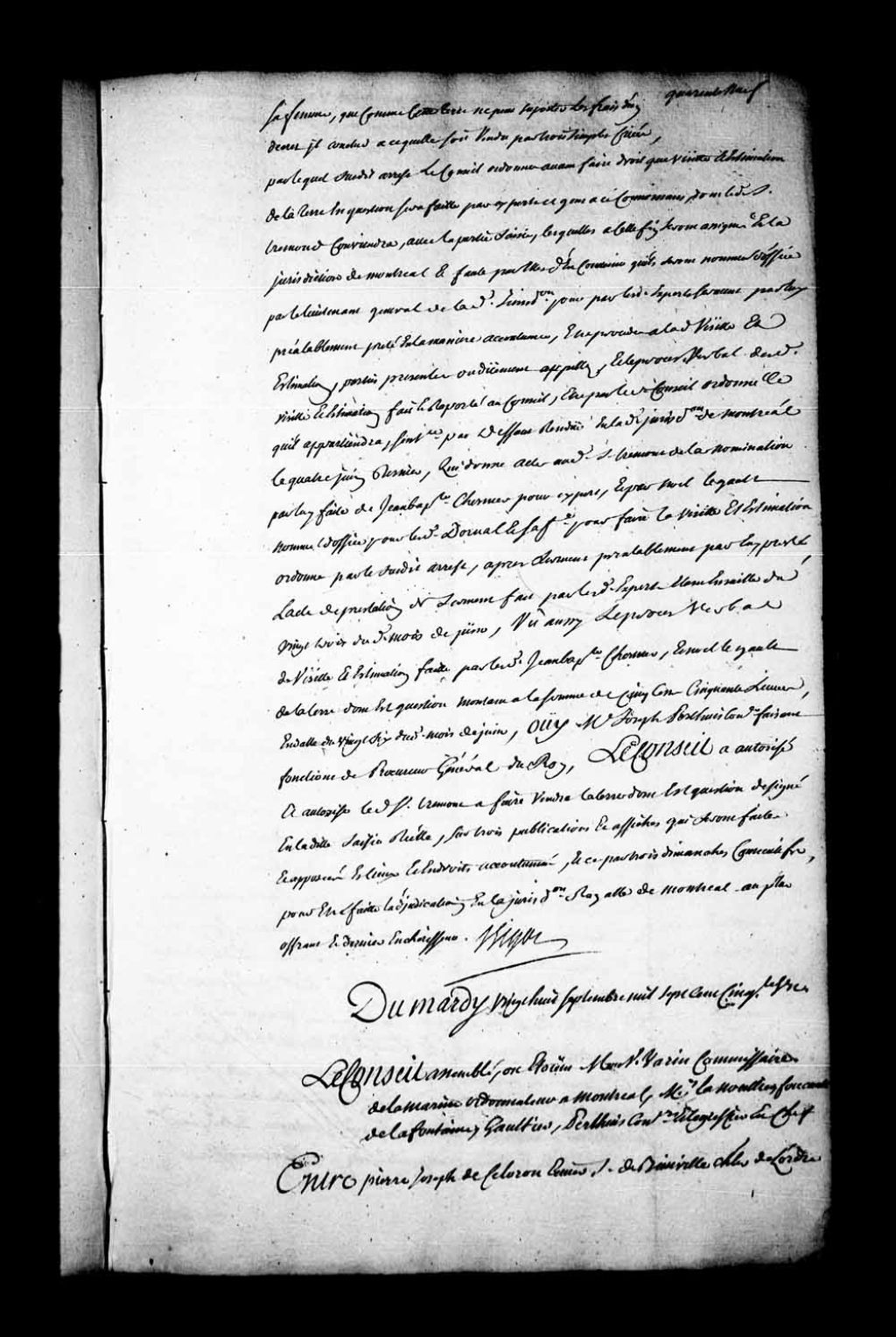 Appel mis à néant dans la cause entre Pierre-Joseph Céloron, sieur de Blainville, chevalier de Saint-Louis, major et commandant du Détroit, au nom et comme tuteur des enfants mineurs issus de son mariage avec Madeleine Blondeau, le sieur Jean Blondeau, le sieur Louis Blondeau, Suzanne Blondeau, épouse séparée quant aux biens de Joseph Hertel, les sieurs Jean-Marie et Louis Blondeau et la dame Hertel, frères et soeurs, héritiers chacun pour un cinquième avec les dits mineurs Céloron, par représentation de la dite dame, leur mère, le défunt Maurice Blondeau et Suzanne Charbonnier, leurs père et mère, appelant des sentences rendues en la Juridiction de Montréal, les 4, 18 et 25 juin 175, contre dame Catherine-Apolline Blondeau, veuve de Louis-René Godfroy de Linctot, officier dans les troupes. Les appelants sont condamné à l'amende de 3 livres pour son «fol appel» et aux dépens de la cause d'appel