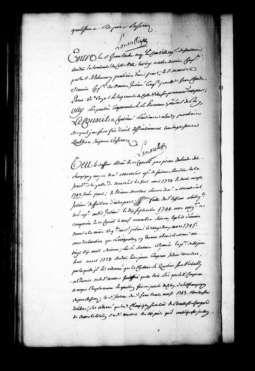 Arrêt qui continue l'audience à lundi prochain auquel jour il sera fait droit définitivement, tant en présence qu'absence, dans la cause entre Jean Taché, négociant à Québec, appelant de la sentence rendue en l'Amirauté de Québec, le 20 octobre 1751, contre Maurice Simonin, capitaine de navire