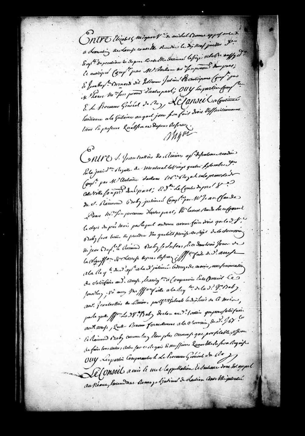 Arrêt qui continue l'audience à la huitaine auquel jour sera fait droit définitivement, tant en présence qu'absence, dans la cause entre Elisabeth Mignot, veuve de Michel Bonnet, appelante de l'exécution de l'arrêt rendu contre elle, le 19 juillet 1751, et appelante de l'exécutoire de dépens décernés contre elle, le 16 octobre 1751, contre Jean-Baptiste Bernard dit Jolicoeur, intimé