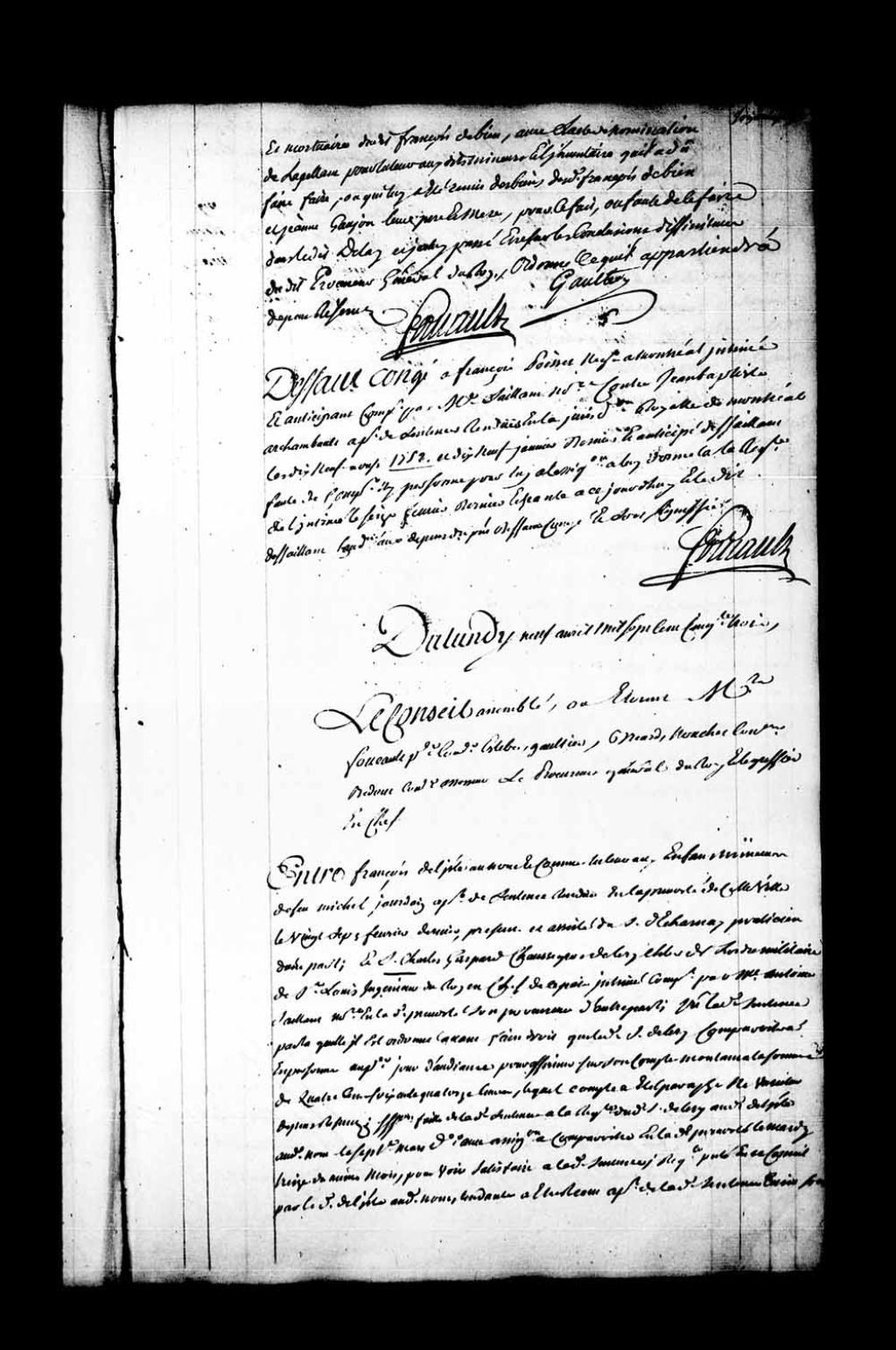 Arrêt qui accorde défaut-congé à François Poisset, négociant à Montréal, contre Jean-Baptiste Archambault, appelant des sentences rendues en la Juridiction de Montréal, les 19 août 1752 et 19 janvier 1753