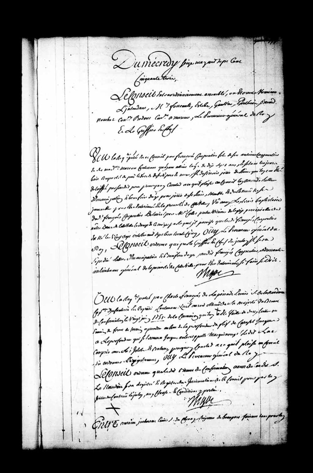 Arrêt qui continue l'instance à lundi prochain entre Antoine Juchereau Duchesnay, seigneur de Beauport, faisant tant pour lui que pour ses consors, appelant de la sentence rendue en la Prévôté de Québec, le 21 janvier 1746, contre les Révérends Pères Jésuites du Collège des Jésuites de Québec, 16 mai 1753, Archives nationales à Québec, Fonds Conseil souverain, (03Q,TP1,S28,P20890).
