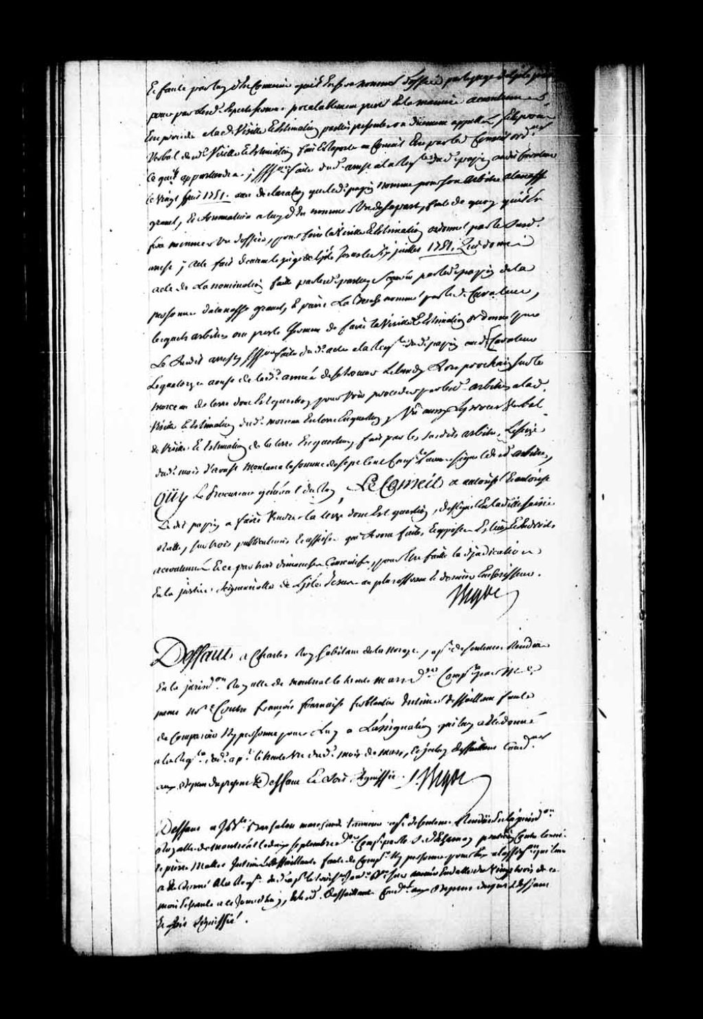 Arrêt qui accorde défaut-congé à Charles Roy, habitant de Lanoraie et appelant de la sentence rendue en la Juridiction de Montréal, le 30 mars 1753, contre François Fournaise, ferblantier