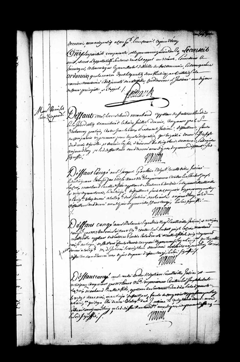 Arrêt qui accorde défaut-congé au sieur André Portes, négociant à Québec, contre Joseph Hubert Lacroix, marchand de la ville de Québec et appelant de la sentence rendue en la Prévôté de Québec, le 20 septembre 1754