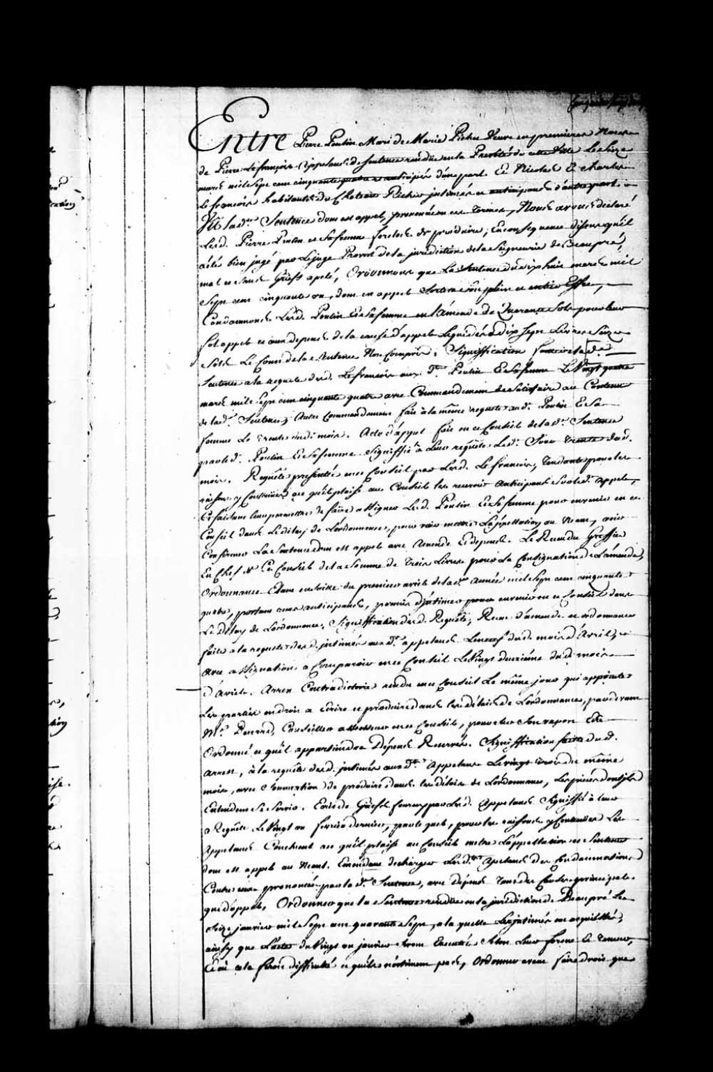 Appel mis à néant de la sentence rendue en la Prévôté de Québec, le 16 mars 1754, dans la cause entre Pierre Poulin, mari de Marie Pichet, veuve en premières noces de Pierre Lefrançois, contre Nicolas et Charles Lefrançois, habitants du Château-Richer. Le Conseil ordonne que la sentence en appel sortira son plein et entier effet. Sur la demande de Nicolas et Charles Lefrançois, portée par leur écrit de griefs, du 21 février 1755, le Conseil a mis hors de Cour et les a condamnés à 3 livres d'amende pour leur «fol appel» et aux dépens de la cause d'appel, 28 avril 1755, Archives nationales à Québec, Fonds Conseil souverain, (03Q,TP1,S28,P21128).