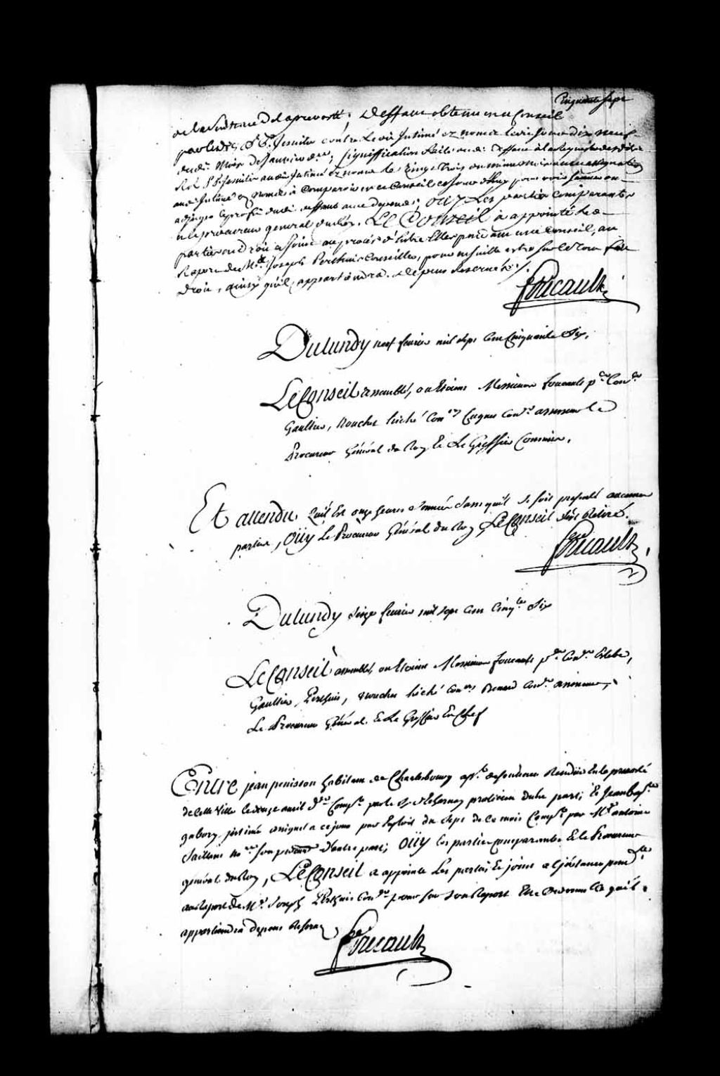 Arrêt qui appointe les parties et joint à l'instance pour que dans le rapport de Joseph Perthuis puisse être ordonné ce qu'il appartiendra dans la cause entre Jean Pénisson, habitant de Charlesbourg et appelant de la sentence rendue en la Prévôté de Québec, le 12 avril 1756, contre Jean-Baptiste Gaboury