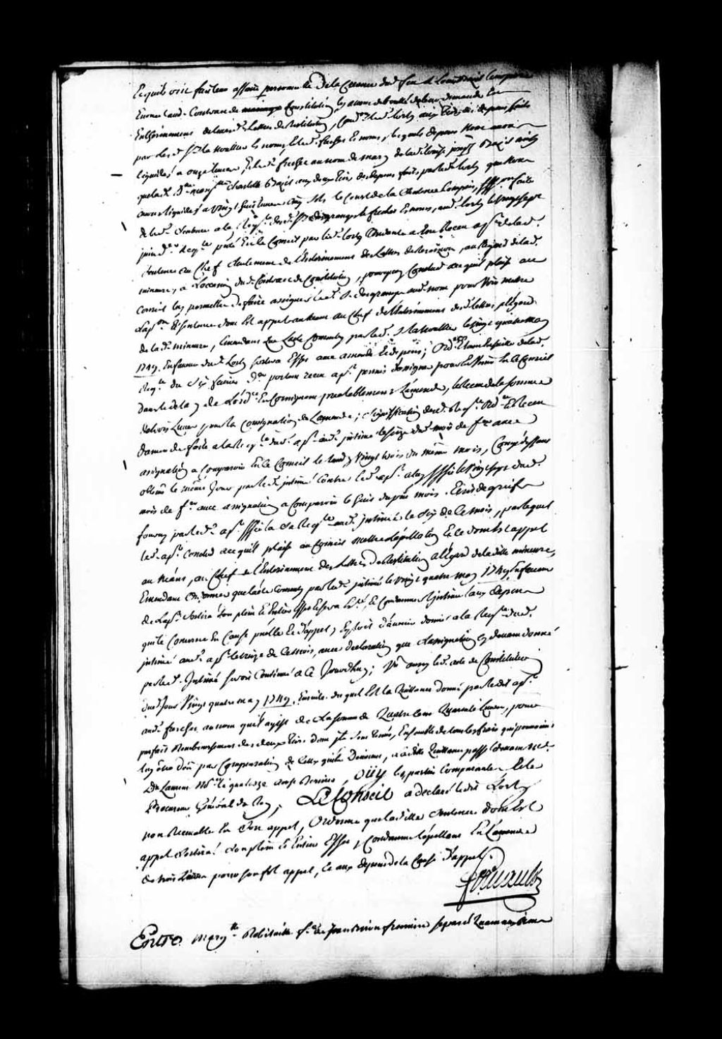 Arrêt qui appointe les parties en droit à écrire et produire, dans les délais de l'ordonnance, devant François Gaultier (Gauthier), conseiller, pour que dans son rapport et sur les conclusions du procureur général du Roi puisse être fait droit ainsi qu'il appartiendra dans la cause entre Marguerite Robitaille, femme de Jean Biron Fresnière, séparée quant aux biens au dit Biron et appelante de la sentence rendue en la Juridiction de Montréal, le 19 août 1754, contre les Sieurs Ecclésiastiques du Séminaire de Saint-Sulpice, établis à Montréal, 15 mars 1756, Archives nationales à Québec, Fonds Conseil souverain, (03Q,TP1,S28,P21229).