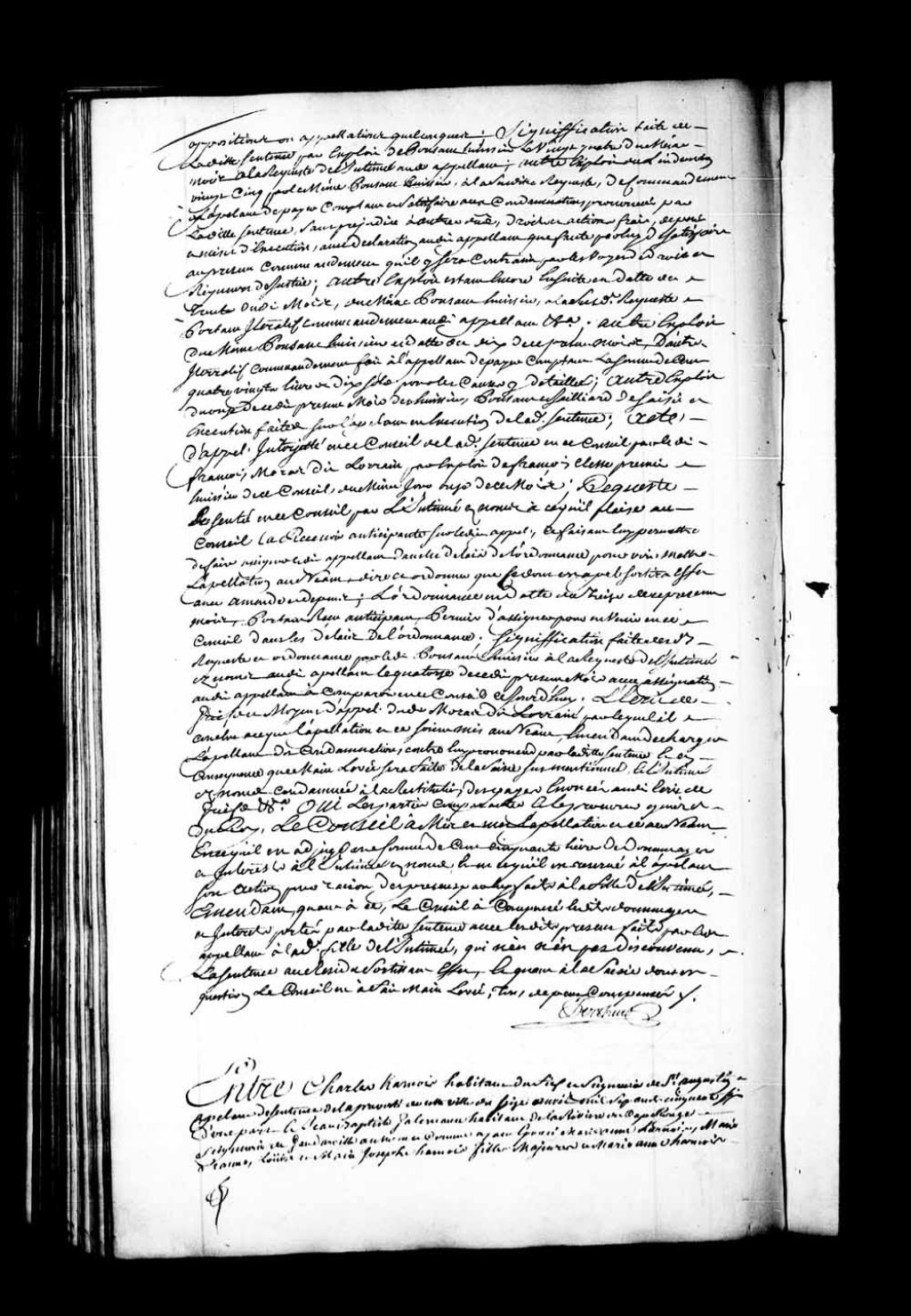 Appel mis à néant de la sentence rendue en la Prévôté de Québec, le 16 avril 1756, dans la cause entre Charles Harnois, habitant du fief et seigneurie de Saint-Augustin, contre Jean-Baptiste Galerneau, habitant de la rivière du Cap-Rouge, seigneur de Godarville, au nom et comme époux de Marie-Anne Harnois, Marie-Jeanne, Louise et Marie-Joseph Harnois, filles majeures, et Marie-Anne Harnois, veuve Pierre Granet, intimés. Charles Harnois est condamné à l'amende de son «fol appel» et aux dépens de la cause d'appel