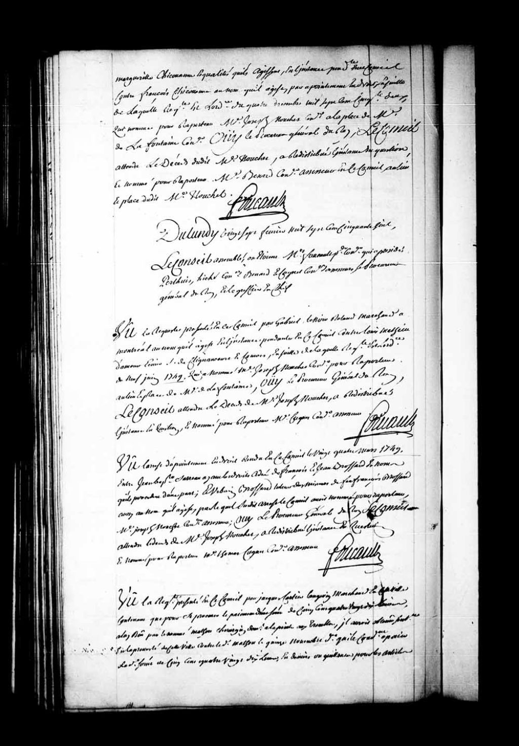 Arrêt qui ordonne, avant de faire droit, que visite et estimation de la terre et maison en contestation sera fait dans la cause entre Jacques Cartier Langevin, marchand à Québec, et le sieur Mathon, chirurgien à la Pointe-aux-Trembles, 27 février 1758, Archives nationales à Québec, Fonds Conseil souverain, (03Q,TP1,S28,P21405).